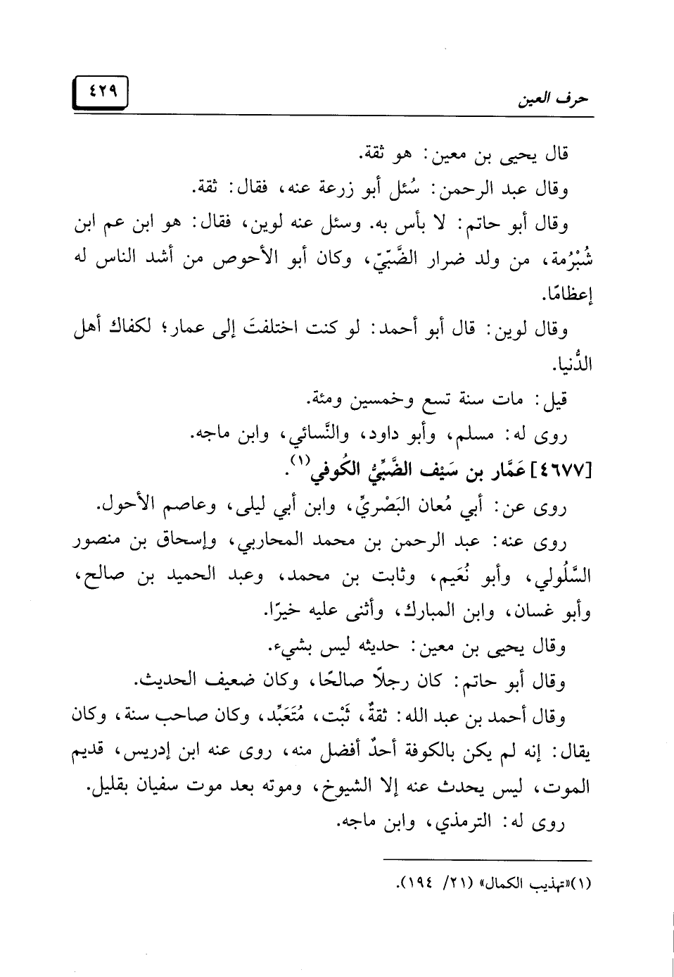 (¬١) "تهذيب الكمال" (٢١/ ١٩٤).