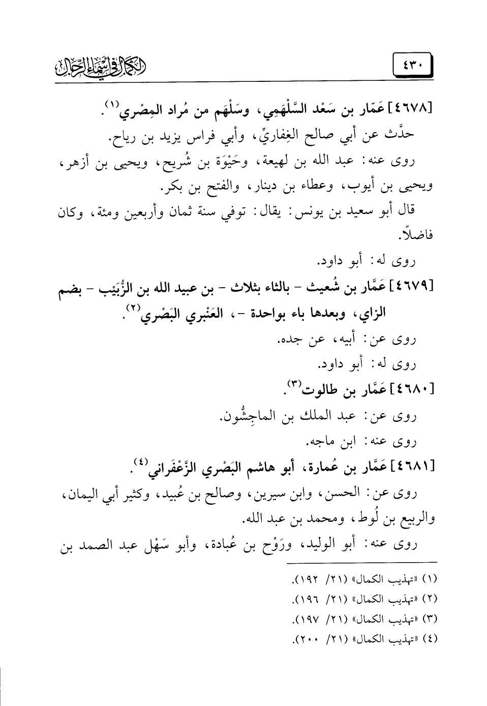 (¬١) "تهذيب الكمال" (٢١/ ١٩٢).