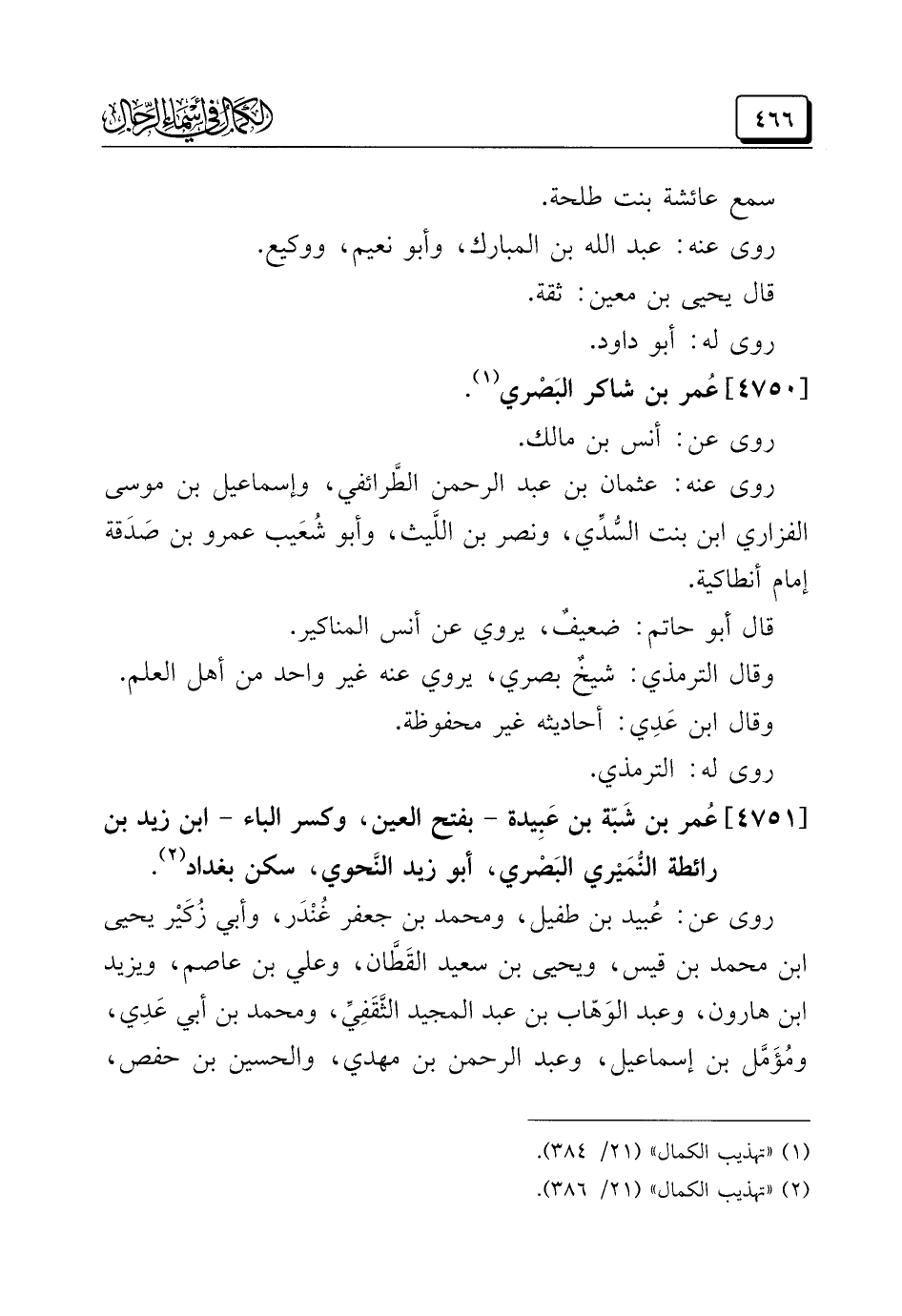 (¬٢) "تهذيب الكمال" (٢١/ ٣٨٦).