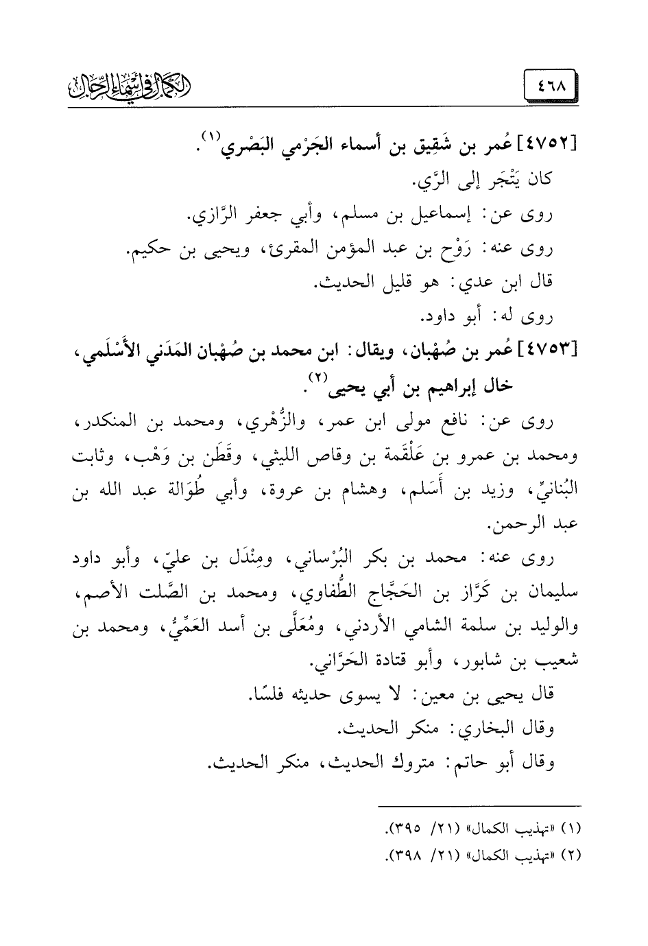 (¬٢) "تهذيب الكمال" (٢١/ ٣٩٨).