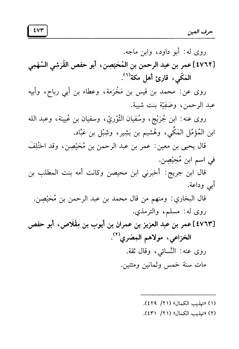 (¬١) "تهذيب الكمال" (٢١/ ٤٢٩).