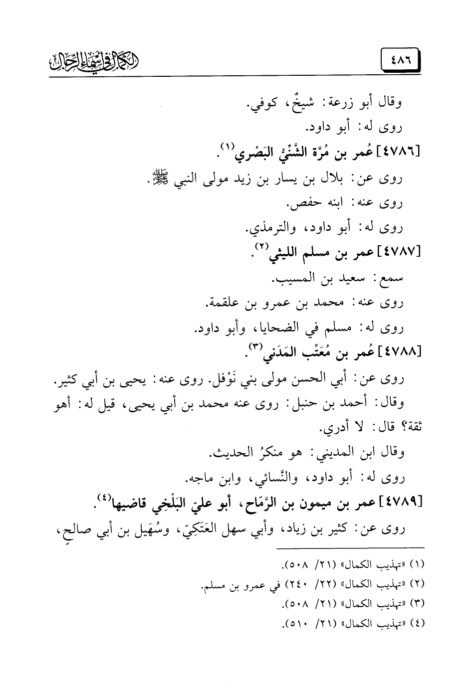 (¬٢) "تهذيب الكمال" (٢٢/ ٢٤٠) في عمرو بن مسلم.