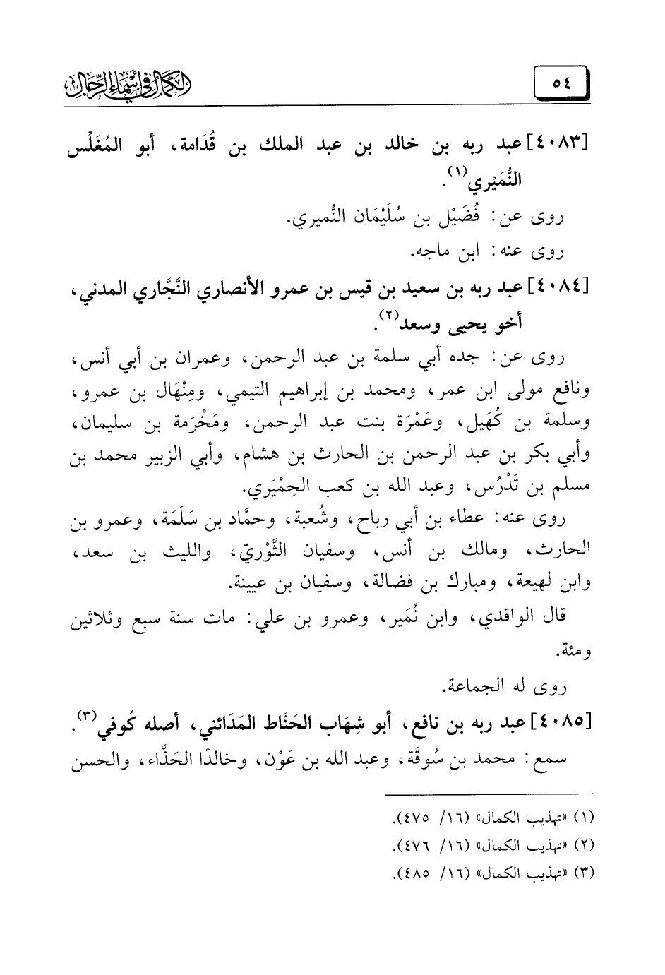 (¬٣) "تهذيب الكمال" (١٦/ ٤٨٥).