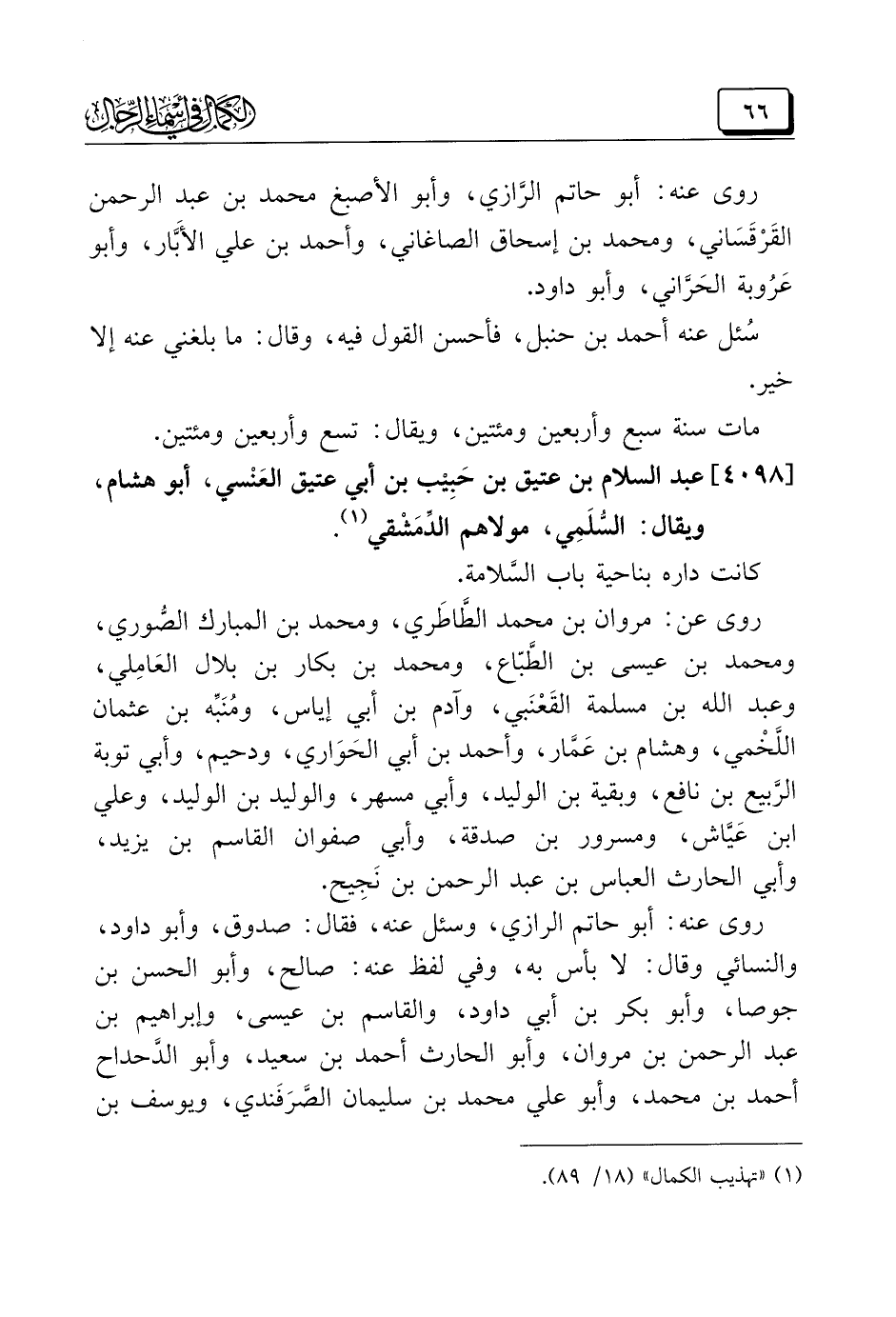 (¬١) "تهذيب الكمال" (١٨/ ٨٩).