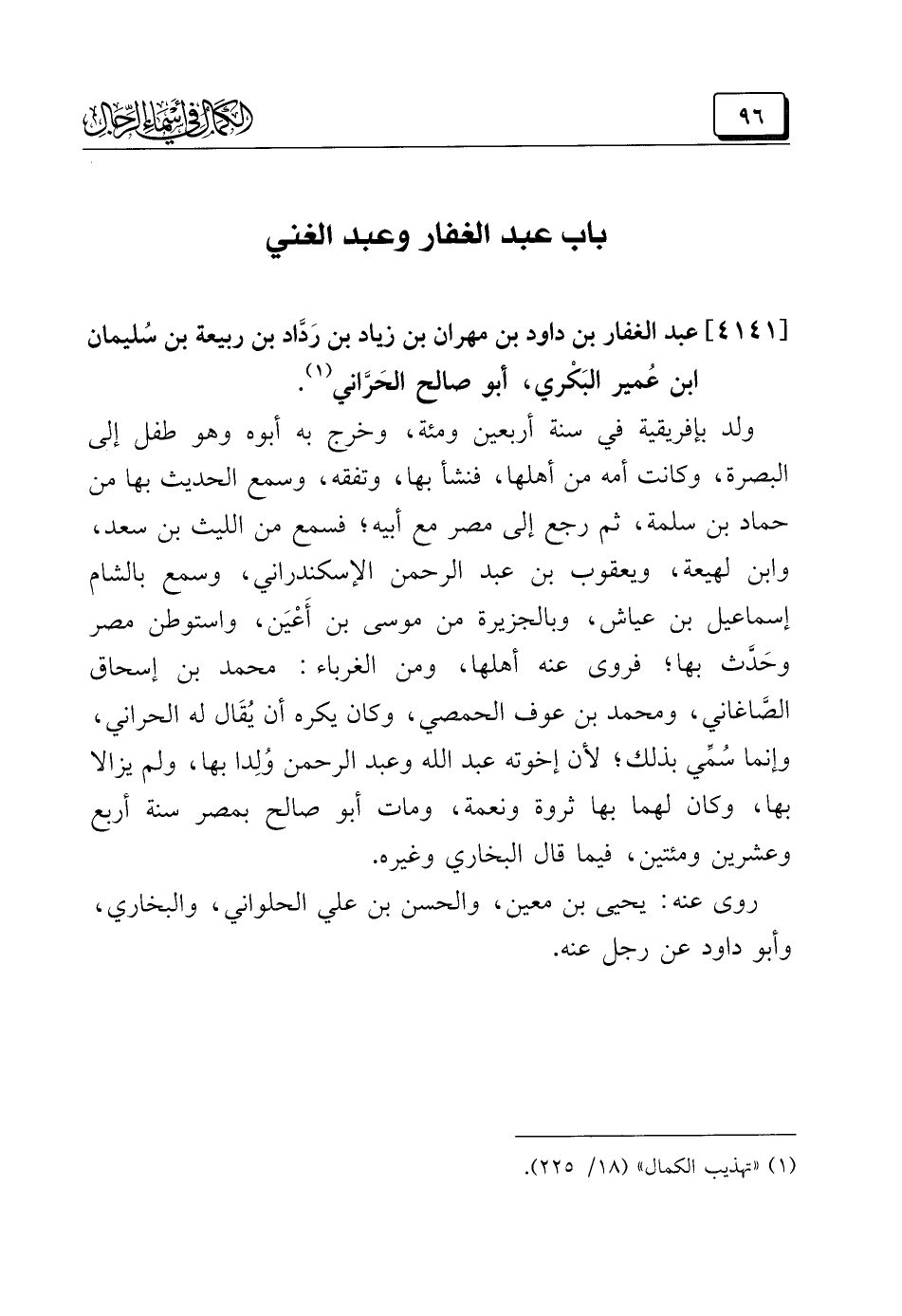 [٤١٤١] عبد الغفار بن داود بن مهران بن زياد بن رَدَّاد بن ربيعة بن سُلَيْمان بن عُمير البَكْري، أبو صالح الحَرَّاني (¬١).