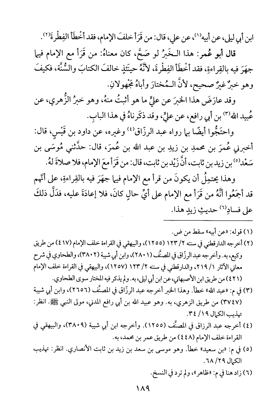وهذا يحتمِلُ أن يكونَ من قرأ مع الإمام فيما جهَرَ فيه بالقِراءةِ، على أنَّهم قد أجمَعُوا أنَّهُ من قَرَأ مع الإمام على أيِّ حالٍ كانَ، فلا إعادَةَ عليه، فدَلَّ ذلكَ على فسادِ (¬٦) حديثِ زيدٍ هذا.