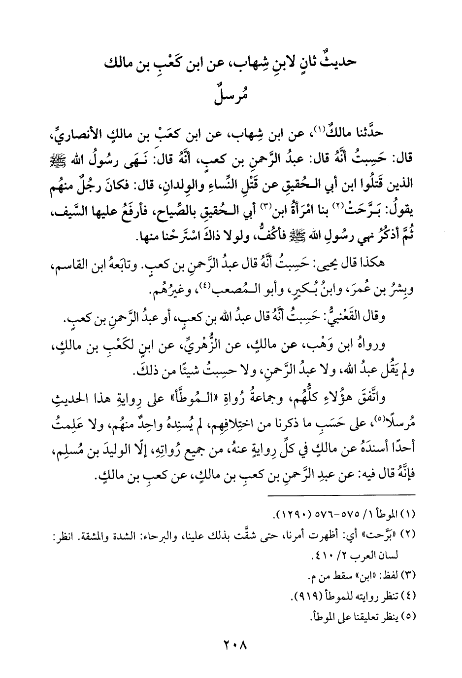 (¬١) الموطأ ١/ ٥٧٥ - ٥٧٦ (١٢٩٠).