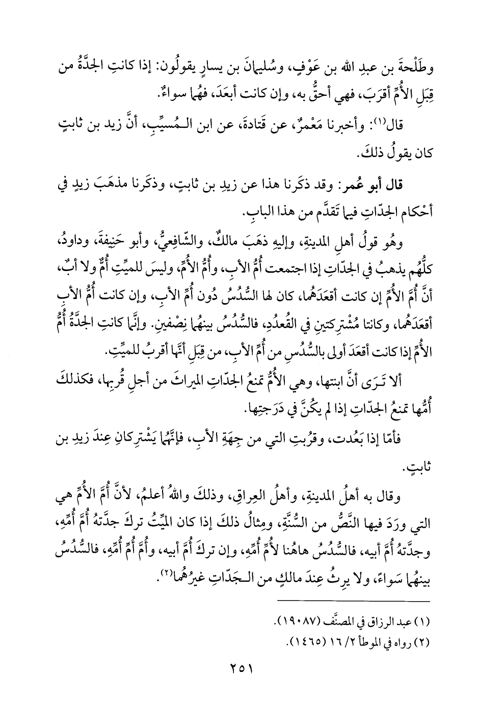 قال أبو عُمر: وقد ذكَرنا هذا عن زيدِ بن ثابتٍ، وذكَرنا مذهَبَ زيدٍ في أحْكام الجدّاتِ فيما تَقدَّم من هذا البابِ.