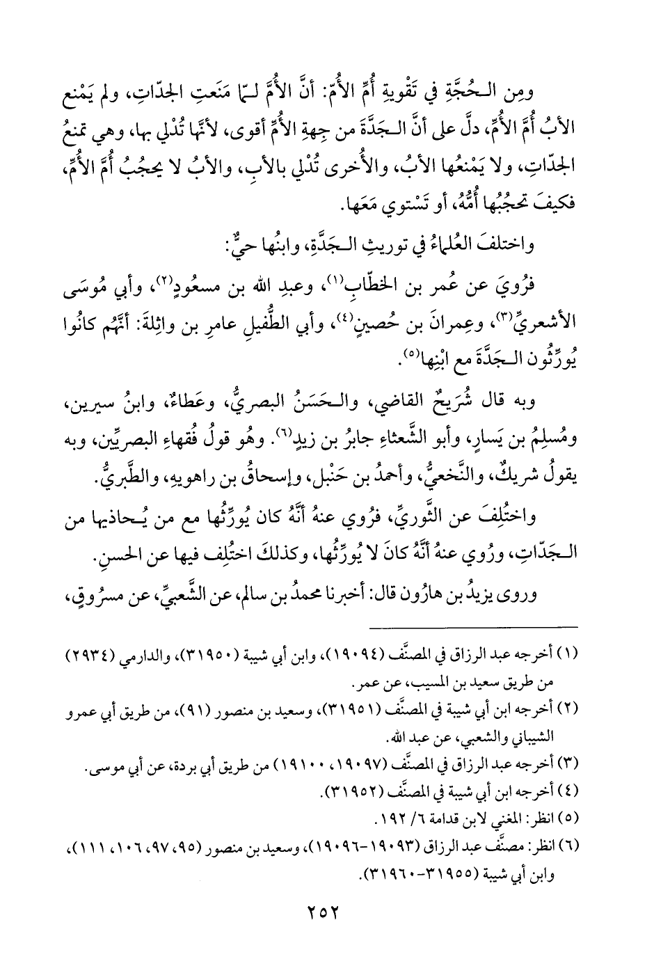 فرُويَ عن عُمر بن الخطّابِ (¬١)، وعبدِ الله بن مسعُودٍ (¬٢)، وأبي مُوسَى الأشعريِّ (¬٣)، وعِمرانَ بن حُصينٍ (¬٤)، وأبي الطُّفيلِ عامرِ بن واثِلةَ: أنَّهُم كانُوا يُورِّثُون الجَد مع ابْنِها (¬٥).