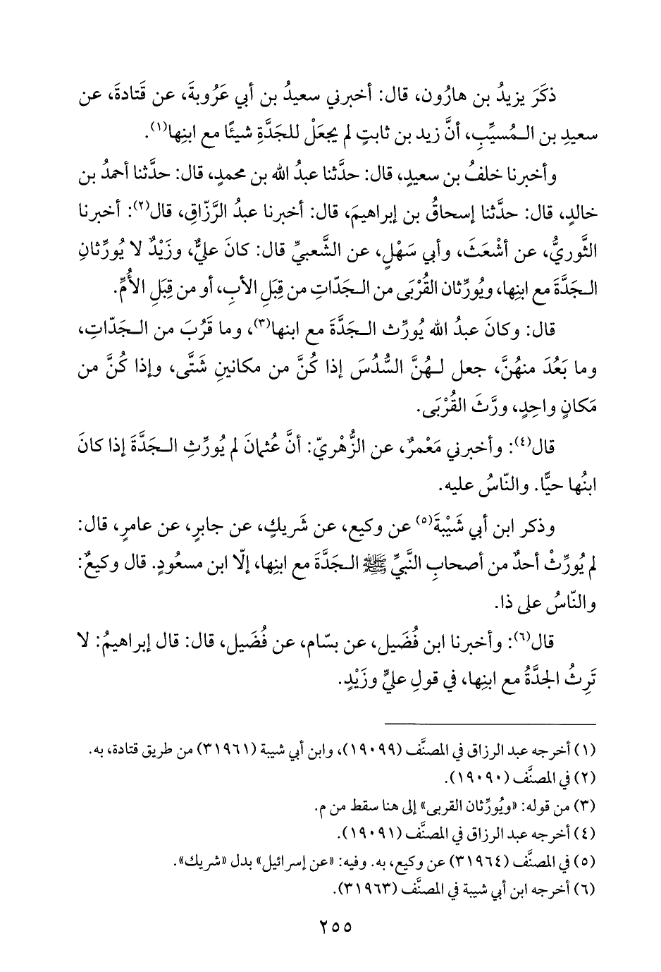 وأخبرنا خلفُ بن سعيدٍ؛ قال: حَدَّثَنَا عبدُ الله بن محمدٍ، قال: حَدَّثَنَا أحمدُ بن خالدٍ، قال: حَدَّثَنَا إسحاقُ بن إبراهيمَ، قال: أخبرنا عبدُ الرَّزّاقِ، قال (¬٢): أخبرنا الثَّوريُّ، عن أشْعَثَ، وأبي سَهْلٍ، عن الشَّعبيِّ قال: كانَ عليٌّ، وزَيْدٌ لا يُورِّثانِ الجَدَّةَ مع ابنِها، ويُورِّثان القُرْبَى من الجَدّاتِ من قِبَلِ الأبِ، أو من قِبَلِ الأُمِّ.