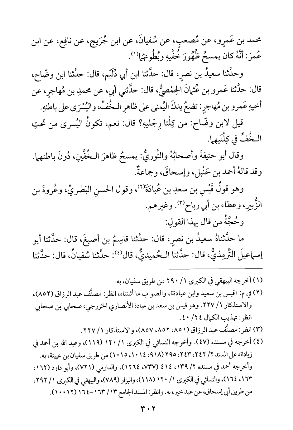 محمد بن عَمرٍو، عن مُصعبٍ، عن سُفيانَ، عن ابن جُرَيج، عن نافِع، عن ابن عُمرَ: أنَّهُ كان يمسحُ ظُهُورَ خُفَّيهِ وبُطُونهُما (¬١).