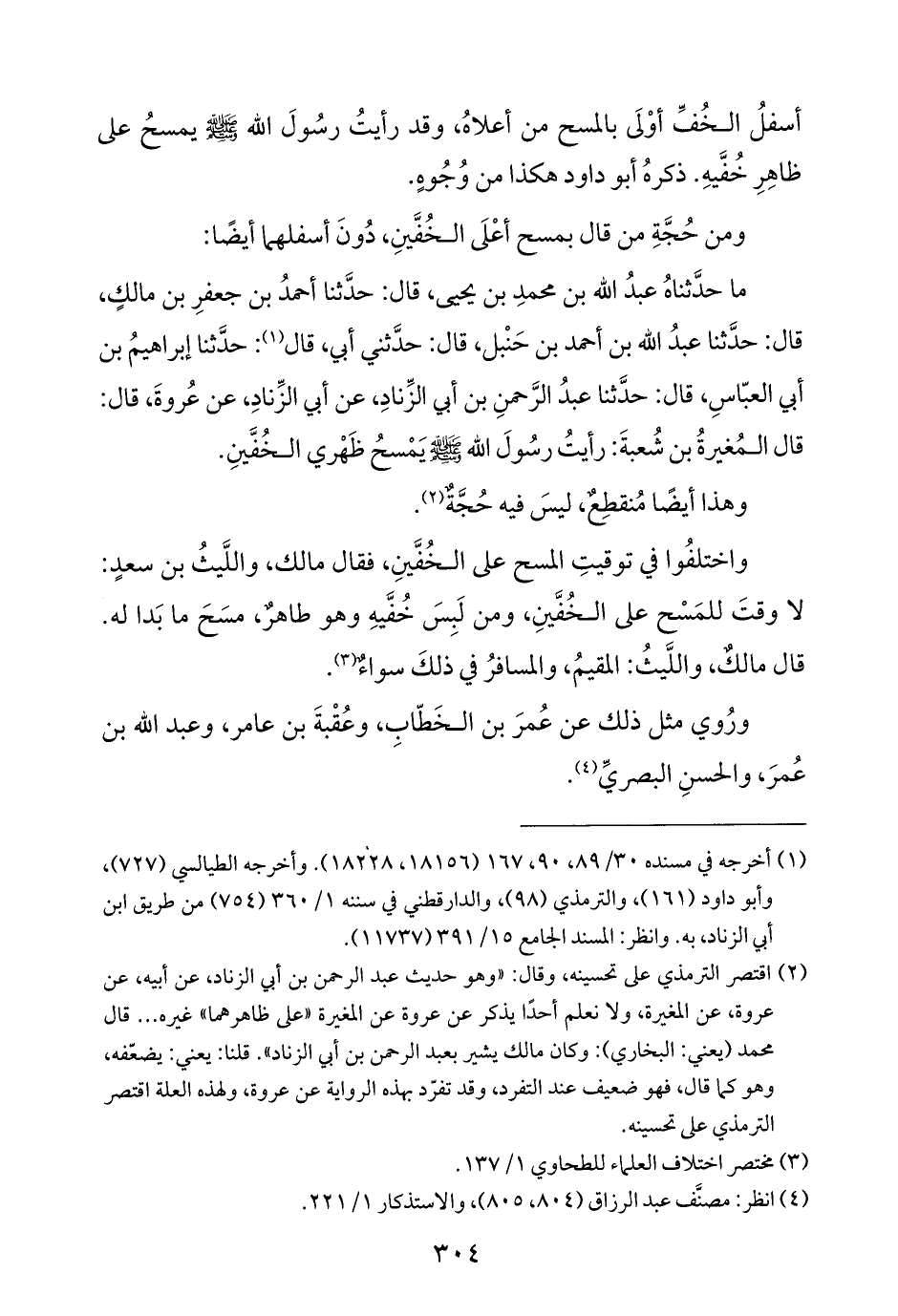 ما حدَّثناهُ عبدُ الله بن محمدِ بن يحيى، قال: حدَّثنا أحمدُ بن جعفرِ بن مالكٍ، قال: حدَّثنا عبدُ الله بن أحمد بن حَنْبل، قال: حدَّثني أبي، قال (¬١): حدَّثنا إبراهيمُ بن أبي العبّاسِ، قال: حدَّثنا عبدُ الرَّحمنِ بن أبي الزِّنادِ، عن أبي الزِّناد، عن عُروةَ، قال: قال المُغيرةُ بن شُعبةَ: رأيتُ رسُولَ الله - صلى الله عليه وسلم - يَمْسحُ ظَهْري الخُفَّينِ.