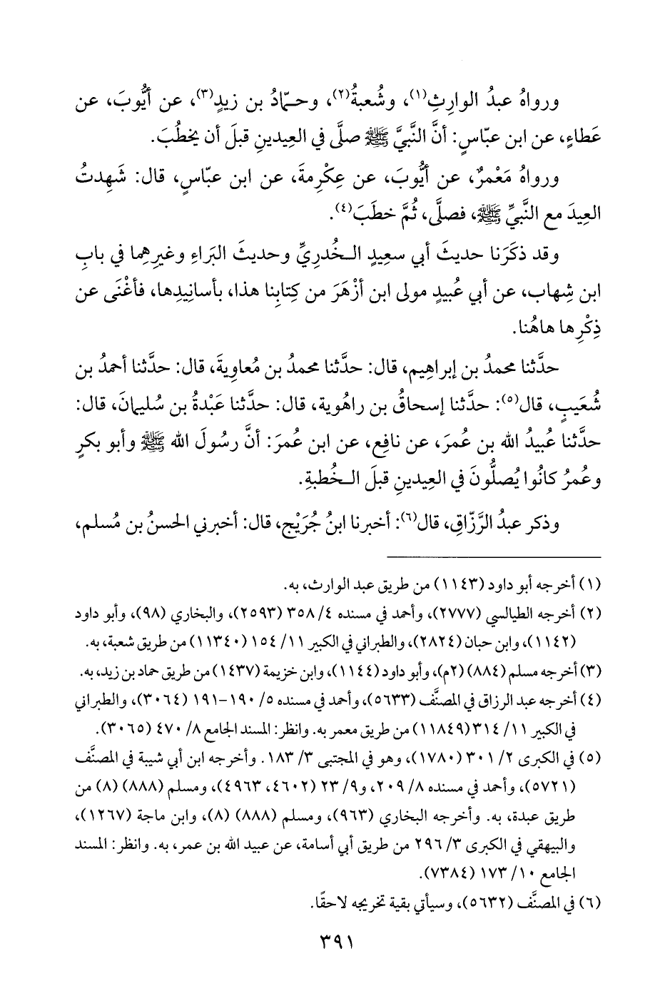 حدَّثنا محمدُ بن إبراهِيم، قال: حدَّثنا محمدُ بن مُعاوِيةَ، قال: حدَّثنا أحمدُ بن شُعَيبٍ، قال (¬٥): حدَّثنا إسحاقُ بن راهُوية، قال: حدَّثنا عَبْدةُ بن سُليمانَ، قال: حدَّثنا عُبيدُ الله بن عُمرَ، عن نافِع، عن ابن عُمرَ: أنَّ رسُولَ الله - صلى الله عليه وسلم - وأبو بكرٍ وعُمرُ كانُوا يُصلُّونَ في العِيدينِ قبلَ الخُطبةِ.