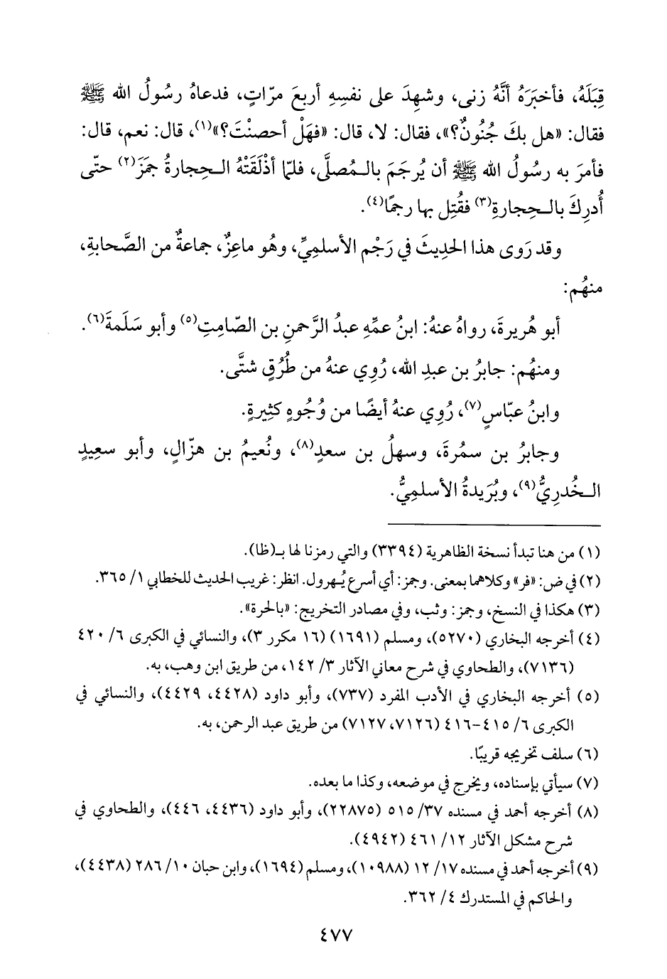 وقد رَوى هذا الحدِيثَ في رَجْم الأسلمِيِّ، وهُو ماعِزٌ، جماعةٌ من الصَّحابةِ، منهُم: