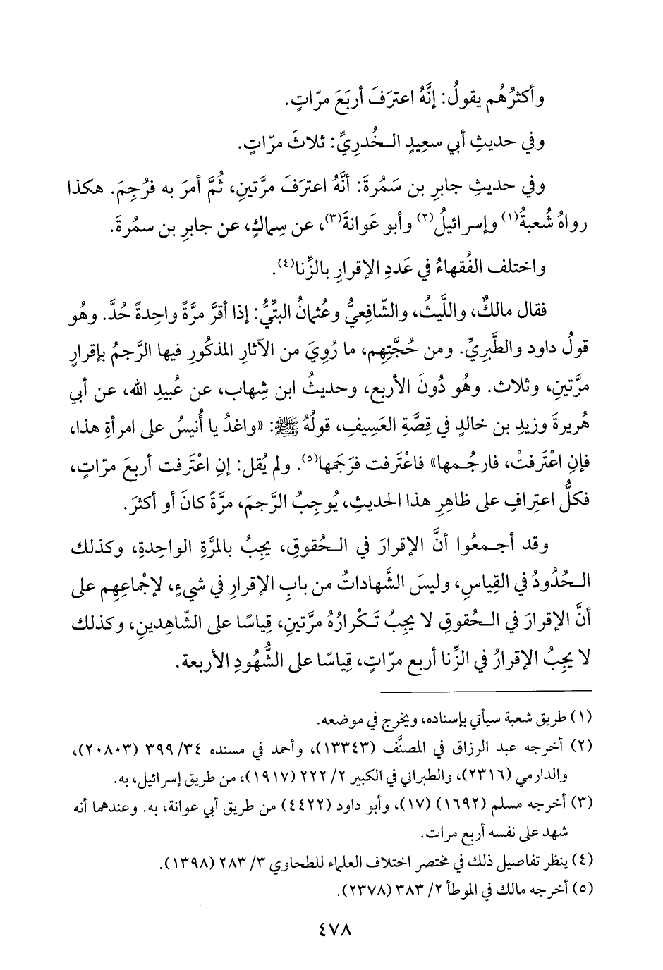 وأكثرُهُم يقولُ: إنَّهُ اعترَفَ أربَعَ مرّاتٍ.