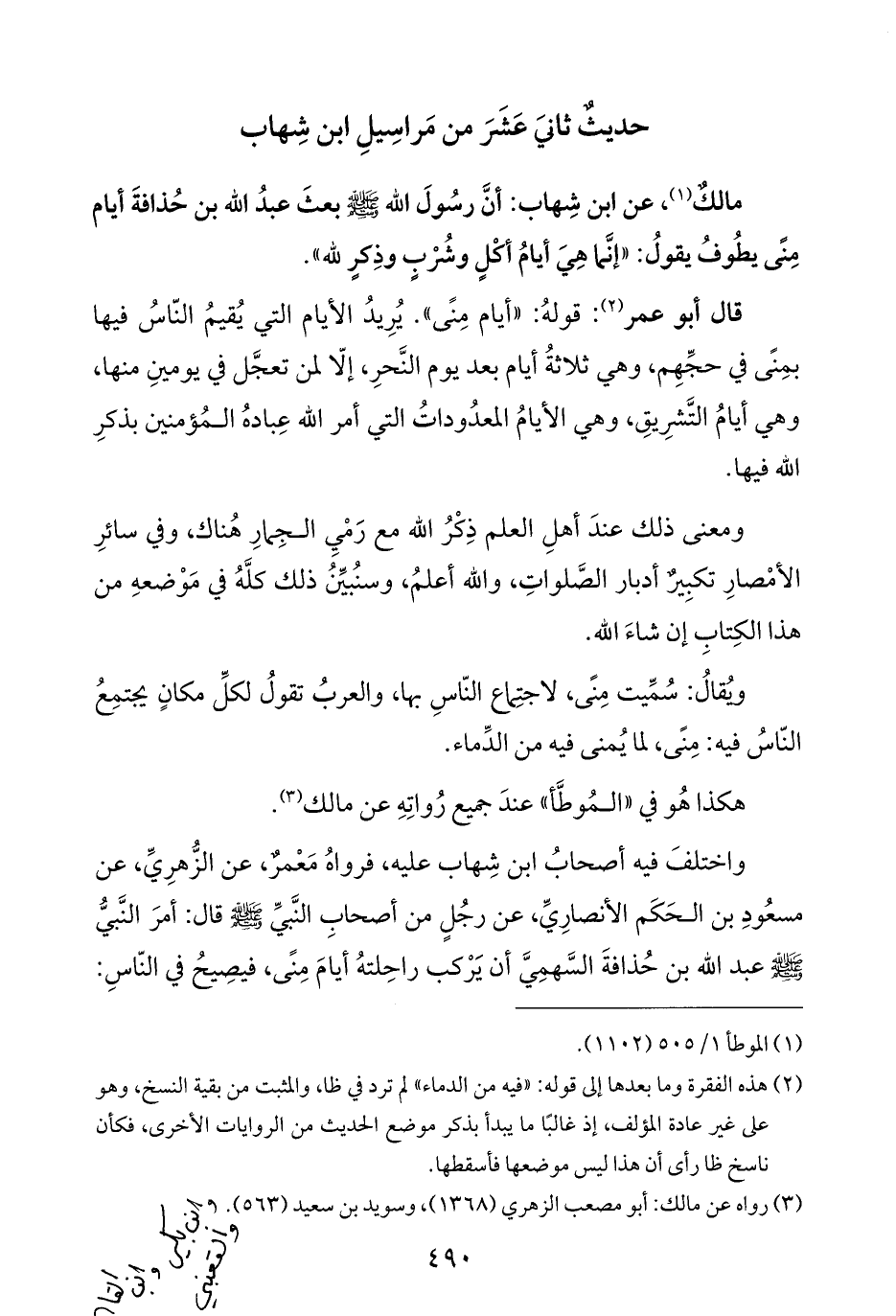 حديث ثانيَ عَشَرَ من مَراسِيلِ ابن شِهاب