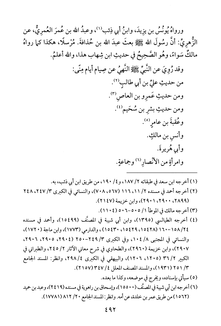 ورواهُ يُونُسُ بن يزِيدَ، وابنُ أبي ذِئب (¬١)، وعبدُ الله بن عُمرَ العُمرِيُّ، عن الزُّهرِيِّ: أنَّ رسُولَ الله - صلى الله عليه وسلم - بعثَ عبدَ الله بن حُذافةَ. مُرْسلًا، هكذا كما رواهُ مالكٌ سواءً، وهُو الصَّحِيحُ في حديثِ ابن شِهاب هذا، والله أعلمُ.