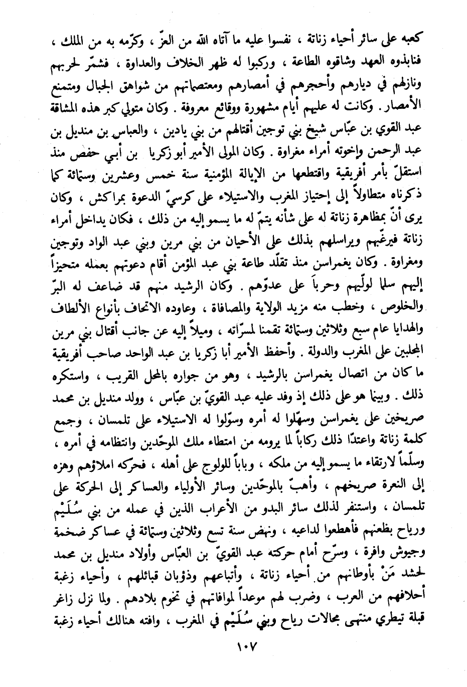 كعبه على سائر أحياء زناتة، نفسوا عليه ما آتاه الله من العزّ، وكرّمه به من الملك، فنابذوه العهد وشاقوه الطاعة، وركبوا له ظهر الخلاف والعداوة، فشمّر لحربهم ونازلهم في ديارهم وأحجرهم في أمصارهم ومعتصماتهم من شواهق الجبال ومتمنع الأمصار. وكانت له عليهم أيام مشهورة ووقائع معروفة. وكان متولي كبر هذه المشاقة عبد القوي بن عبّاس شيخ بني توجين أقتالهم من بني يادين، والعباس بن منديل بن عبد الرحمن وإخوته أمراء مغراوة. وكان المولى الأمير أبو زكريا بن أبي حفص منذ استقلّ بأمر إفريقية واقتطعها من الإيالة المؤمنية سنة خمس وعشرين وستمائة كما ذكرناه متطاولا إلى احتياز المغرب والاستيلاء على كرسيّ الدعوة بمراكش، وكان يرى أنّ بمظاهرة زناتة له على شأنه يتمّ له ما يسمو إليه من ذلك، فكان يداخل أمراء زناتة فيرغّبهم ويراسلهم بذلك على الأحيان من بني مرين وبني عبد الواد وتوجين ومغراوة. وكان يغمراسن منذ تقلّد طاعة بني عبد المؤمن أقام دعوتهم بعمله متحيزا إليهم سلما لوليّهم وحربا على عدوّهم. وكان الرشيد منهم قد ضاعف له البرّ والخلوص، وخطب منه مزيد الولاية والمصافاة، وعاوده الإتحاف بأنواع الألطاف والهدايا عام سبع وثلاثين وستمائة تقمنا لمسرّاته، وميلا إليه عن جانب أقتال بني مرين المجلبين على المغرب والدولة. وأحفظ الأمير أبا زكريا بن عبد الواحد صاحب إفريقية ما كان من اتصال يغمراسن بالرشيد، وهو من جواره بالمحل القريب، واستكره ذلك. وبينما هو على ذلك إذ وفد عليه عبد القويّ بن عبّاس، وولد منديل بن محمد صريخين على يغمراسن وسهّلوا له أمره وسوّلوا له الاستيلاء على تلمسان، وجمع كلمة زناتة واعتدّا ذلك ركابا لما يرومه من امتطاء ملك الموحّدين وانتظامه في أمره، وسلّما لارتقاء ما يسمو إليه من ملكه، وبابا للولوج على أهله، فحركه املاؤهم وهزه إلى النعرة صريخهم، وأهبّ بالموحّدين وسائر الأولياء والعساكر إلى الحركة على تلمسان، واستنفر لذلك سائر البدو من الأعراب الذين في عمله من بني سليم ورياح بظعنهم فأهطعوا لداعيه، ونهض سنة تسع وثلاثين وستمائة في عساكر ضخمة وجيوش وافرة، وسرّح أمام حركته عبد القويّ بن العبّاس وأولاد منديل بن محمد لحشد من بأوطانهم من أحياء زناتة، وأتباعهم وذؤبان قبائلهم، وأحياء زغبة أحلافهم من العرب، وضرب لهم موعدا لموافاتهم في تخوم بلادهم. ولما نزل زاغر قبلة تيطري منتهى مجالات رياح وبني سليم في المغرب، وافته هنالك أحياء زغبة