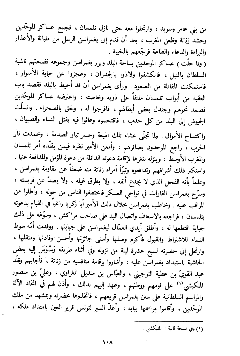 من بني عامر وسويد، وارتحلوا معه حتى نازل تلمسان، فجمع عساكر الموحّدين وحشد زناتة وظعن المغرب، بعد أن قدم إلى يغمراسن الرسل من مليانة والأعذار والبراءة والدعاء والطاعة فرجّعهم بالخيبة.