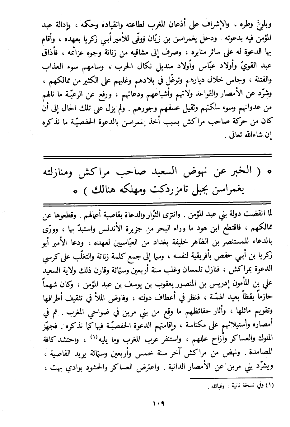 (الخبر عن نهوض السعيد صاحب مراكش ومنازلته يغمراسن بجبل تامزردكت ومهلكه هنالك)