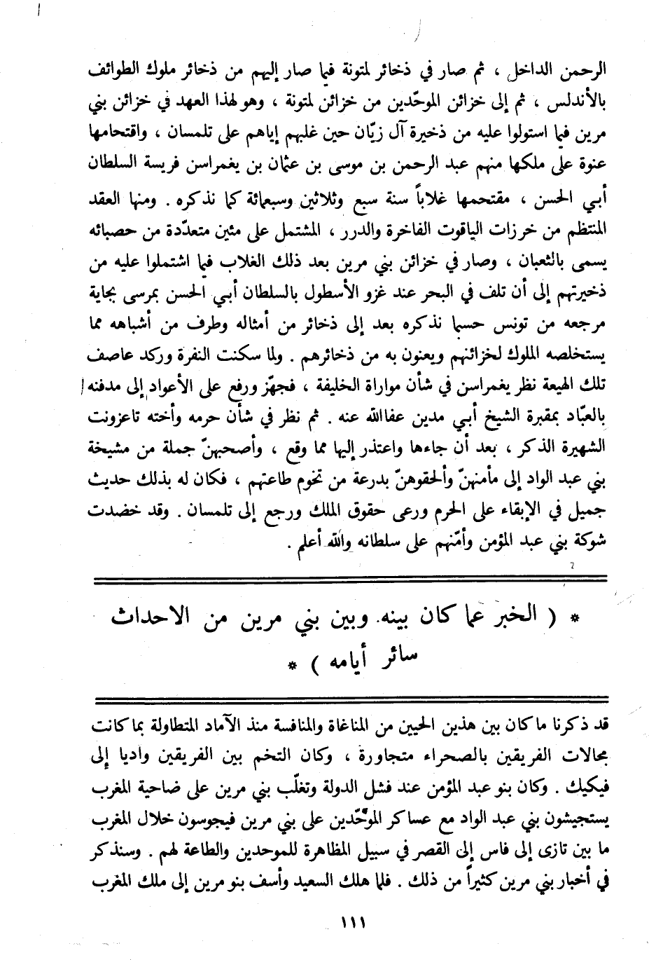 (الخبر عما كان بينه وبين بني مرين من الاحداث سائر أيامه)