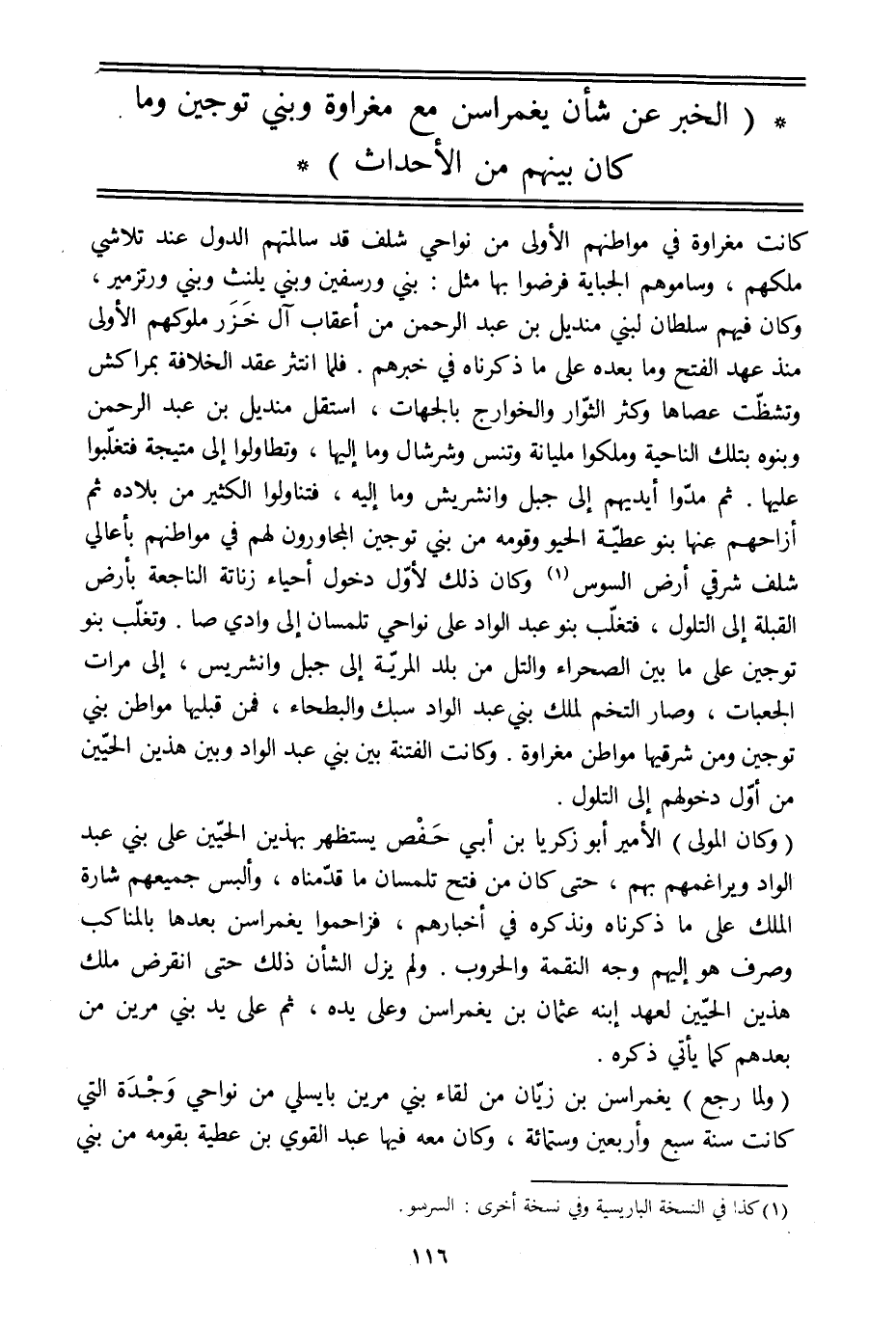 (الخبر عن شأن يغمراسن مع مغراوة وبني توجين وما كان بينهم من الأحداث)