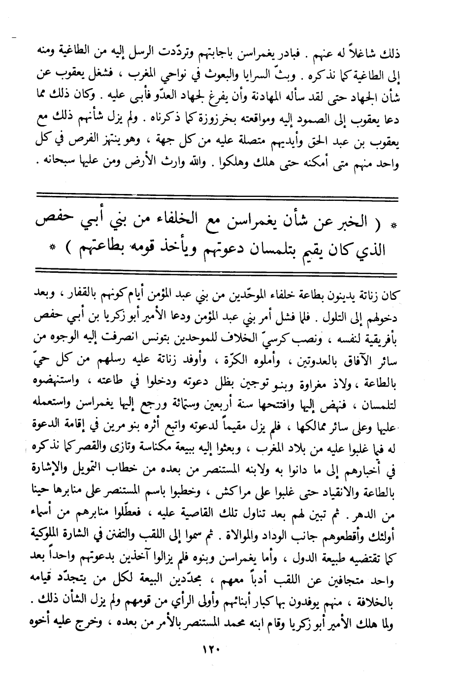 (الخبر عن شأن يغمراسن مع الخلفاء من بني أبي حفص الّذي كان يقيم بتلمسان دعوتهم ويأخذ قومه بطاعتهم)