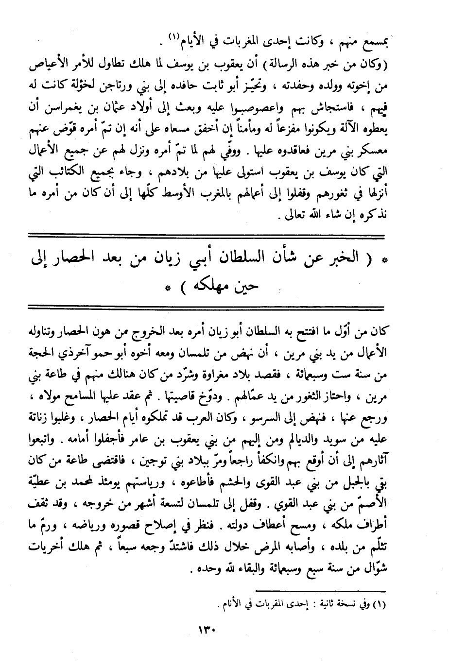 (الخبر عن شأن السلطان أبي زيان من بعد الحصار إلى حين مهلكه)