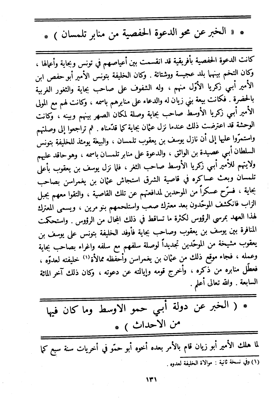 (الخبر عن محو الدعوة الحفصية من منابر تلمسان)