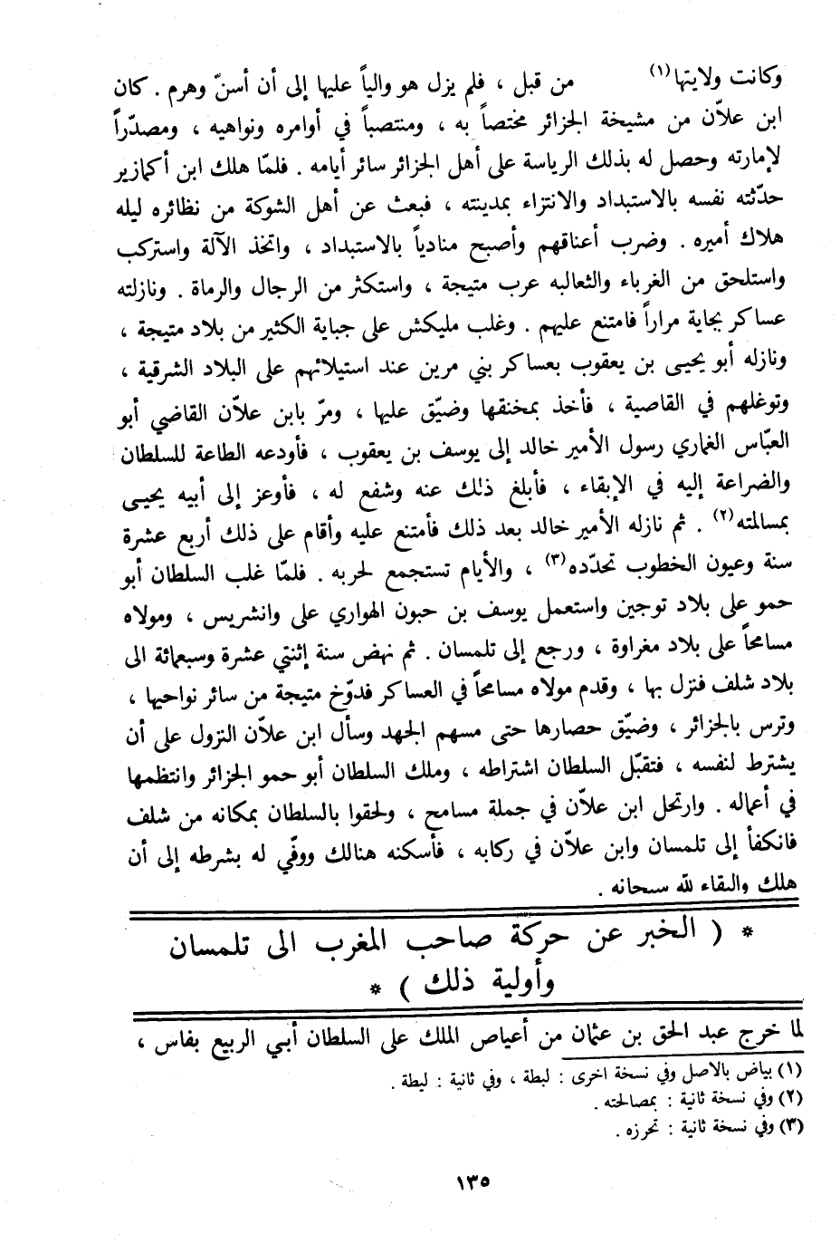 (الخبر عن حركة صاحب المغرب الى تلمسان وأولية ذلك)