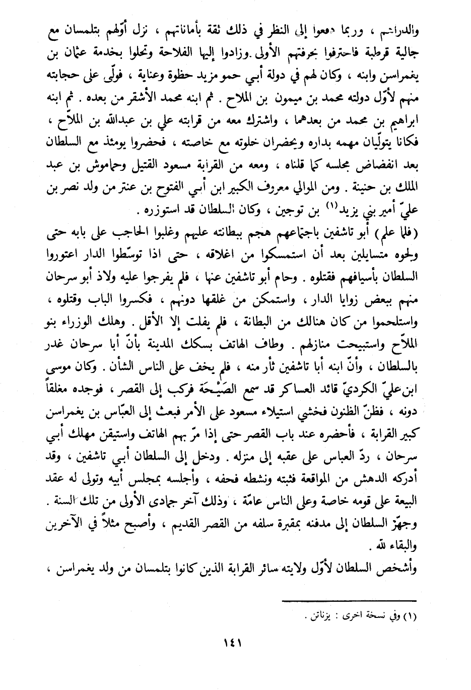 وأشخص السلطان لأوّل ولايته سائر القرابة الذين كانوا بتلمسان من ولد يغمراسن،