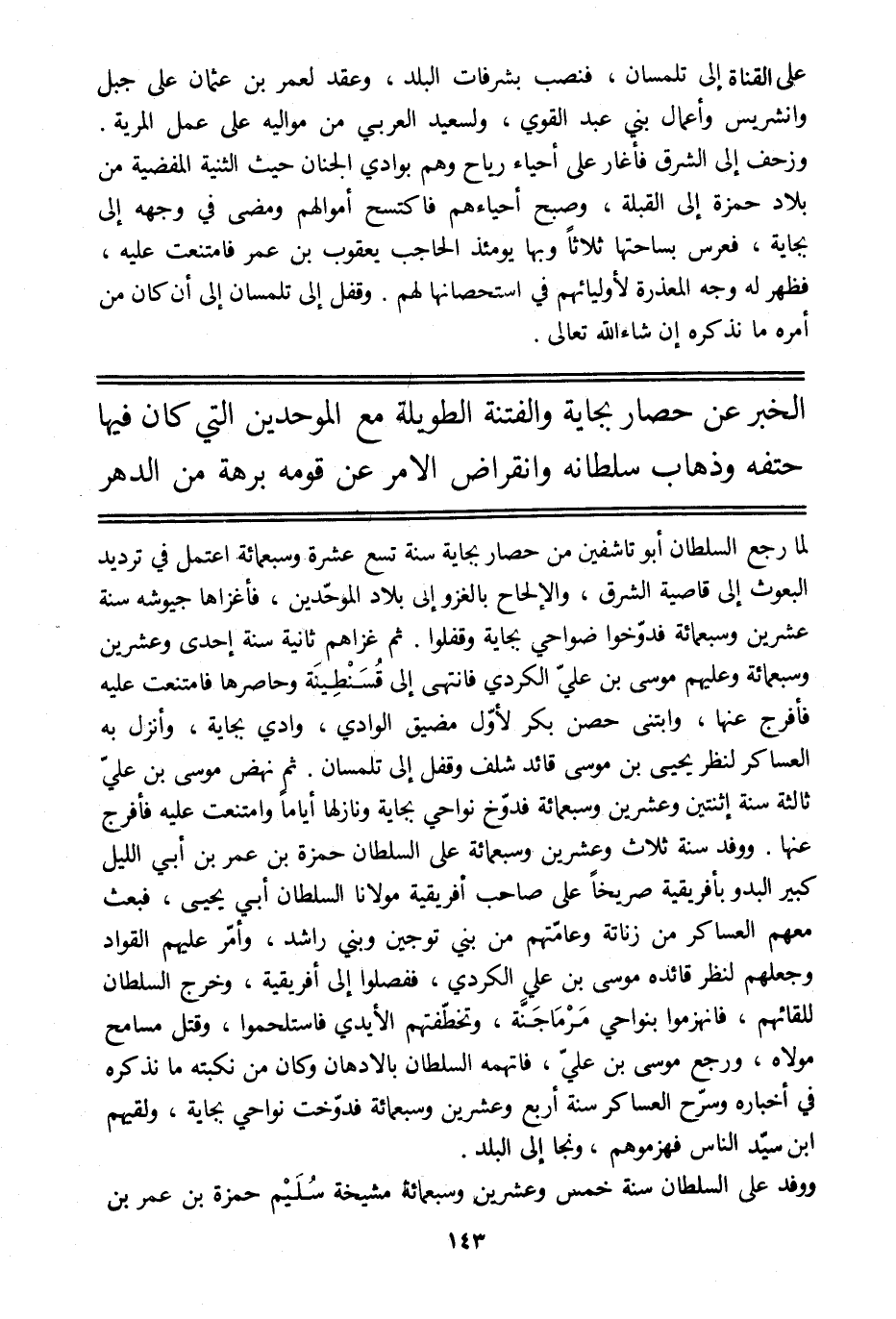 الخبر عن حصار بجاية والفتنة الطويلة مع الموحدين التي كان فيها حتفه وذهاب سلطانه وانقراض الأمر عن قومه برهة من الدهر