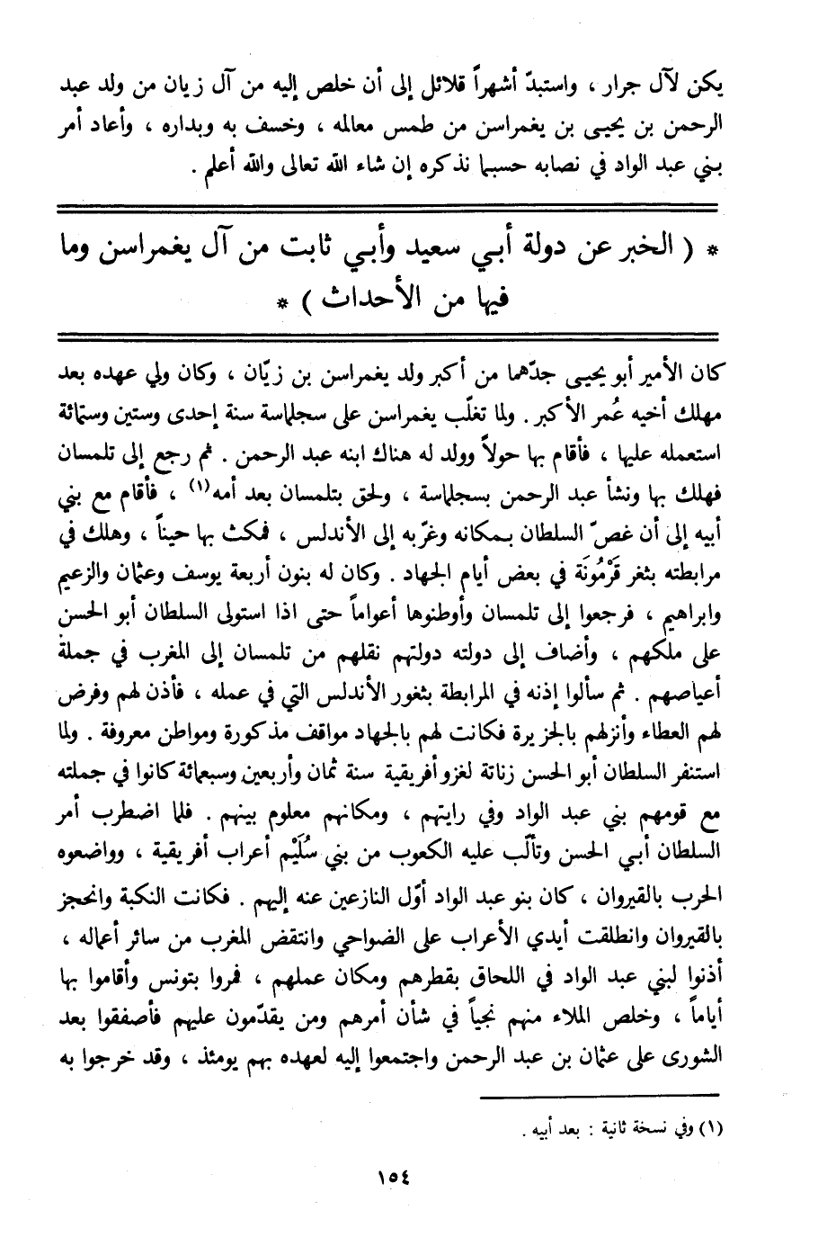 (الخبر عن دولة أبي سعيد وأبي ثابت من آل يغمراسن وما فيها من الأحداث)