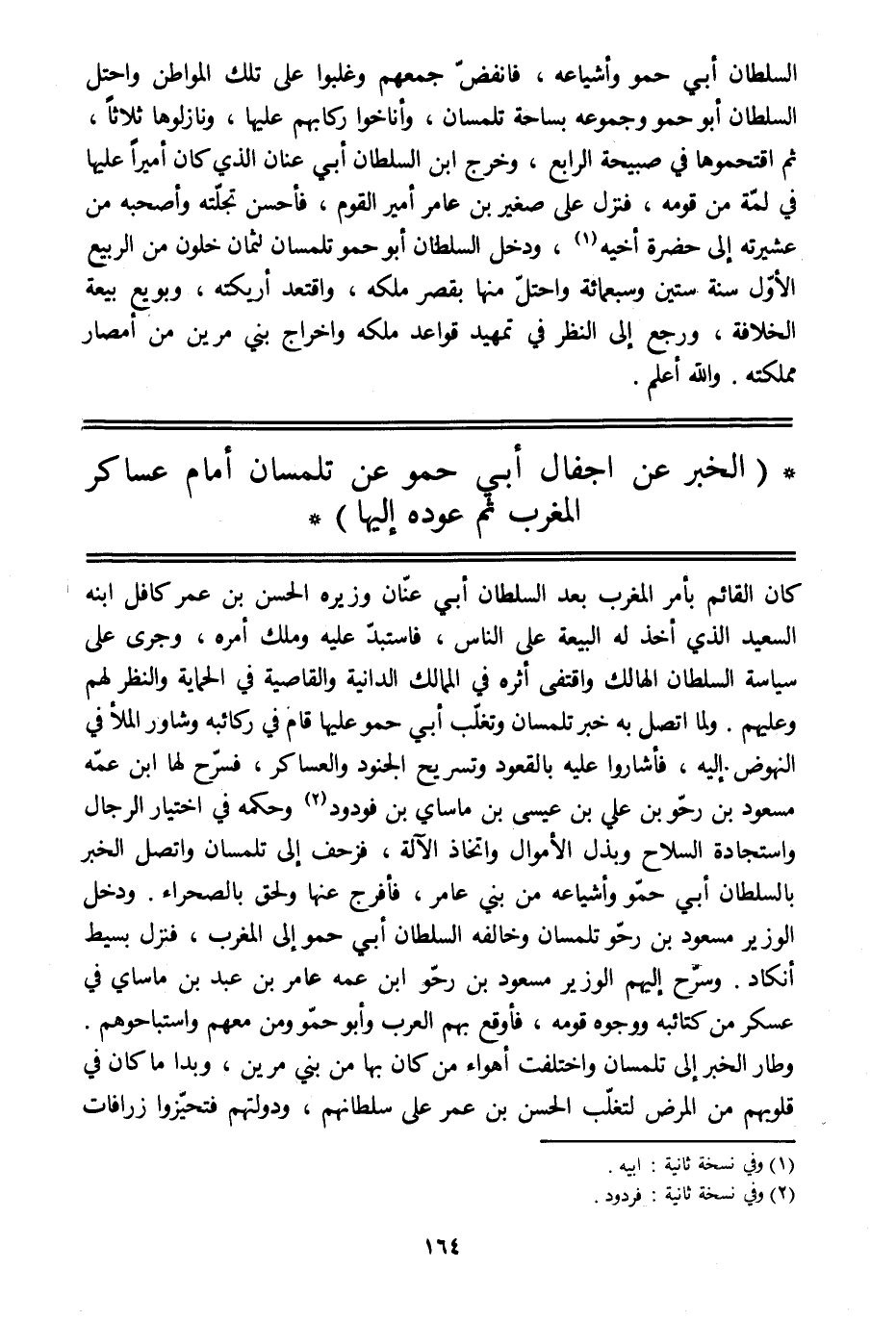 (الخبر عن إجفال أبي حمو عن تلمسان أمام عساكر المغرب ثم عوده إليها)