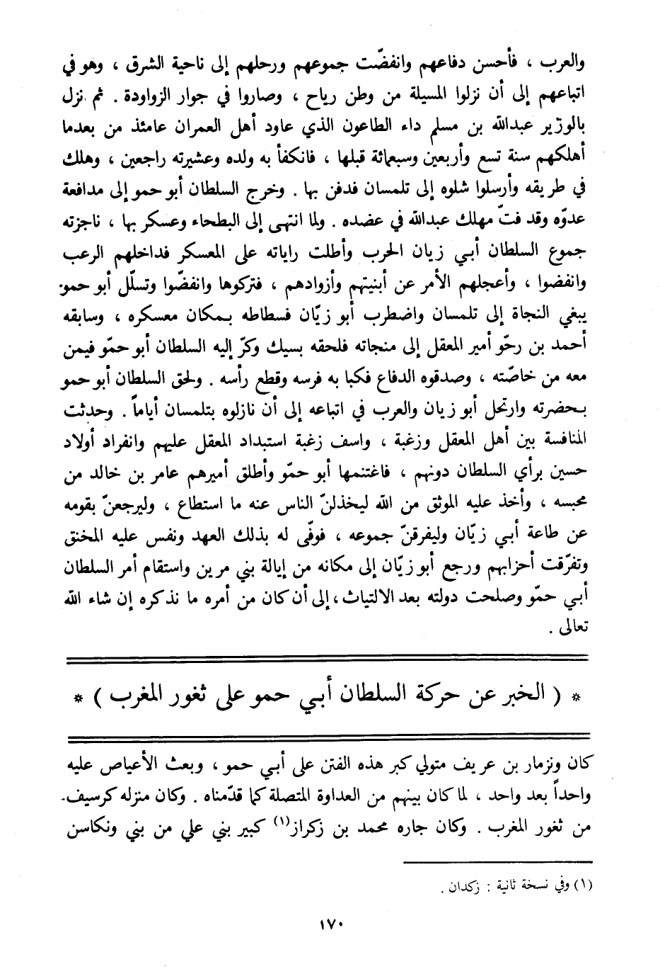 (الخبر عن حركة السلطان أبي حمو على ثغور المغرب)