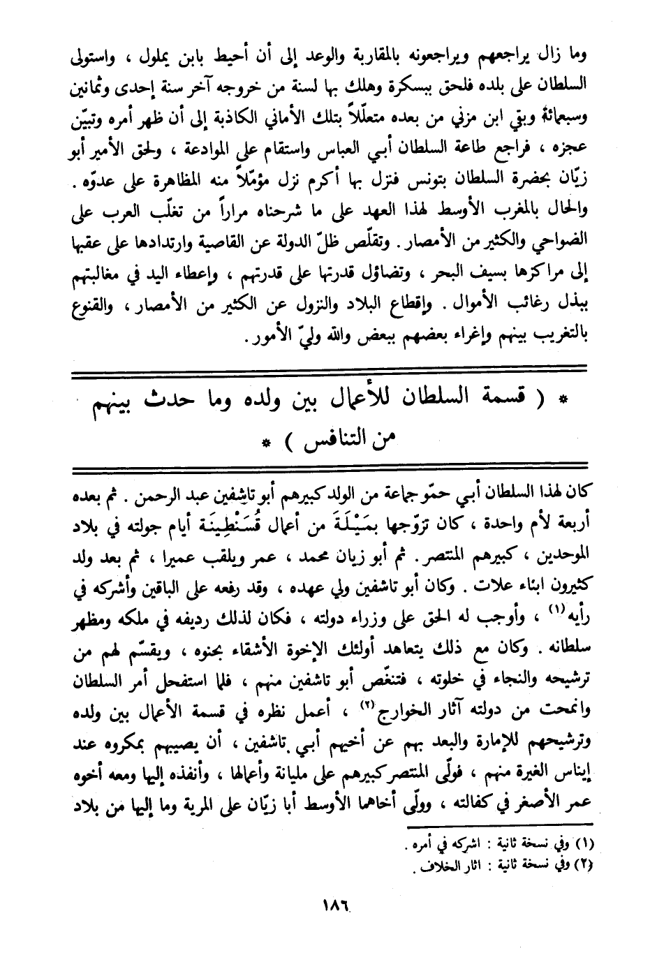 (قسمة السلطان للأعمال بين ولده وما حدث بينهم من التنافس)
