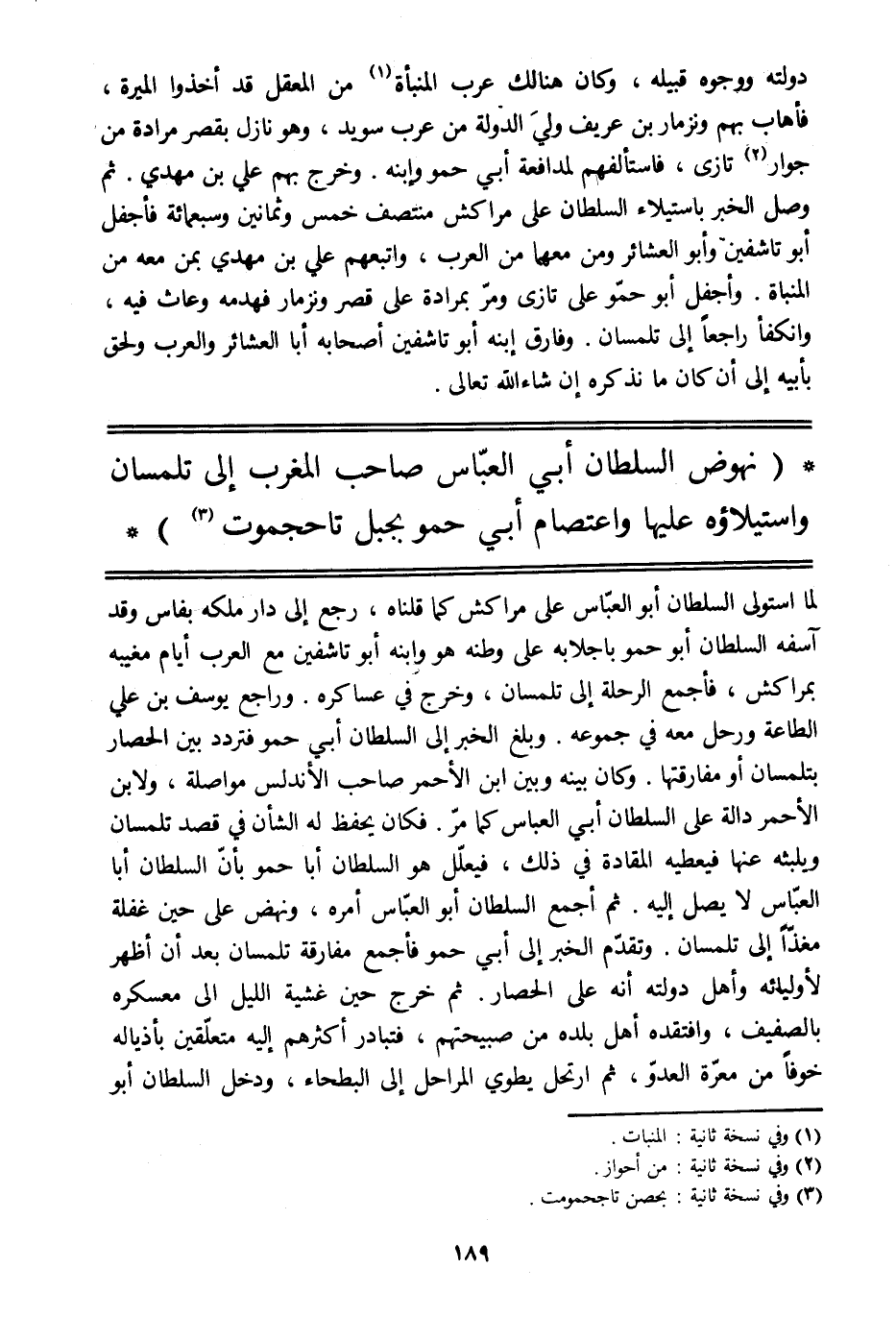 (نهوض السلطان أبي العبّاس صاحب المغرب إلى تلمسان واستيلاؤه عليها واعتصام أبي حمو بجبل تاحجموت [3] )