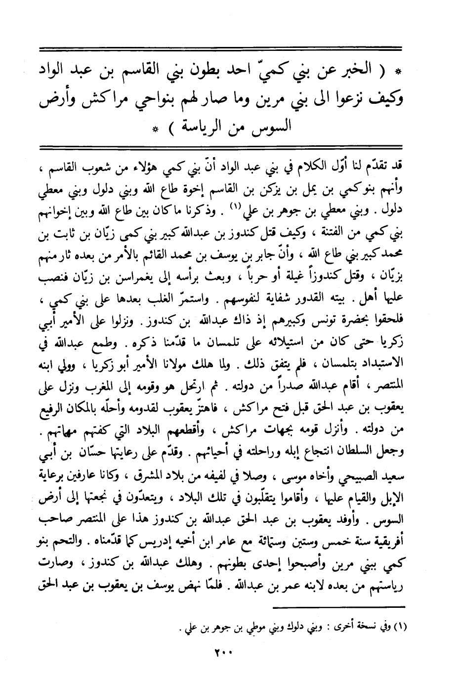 (الخبر عن بني كميّ أحد بطون بني القاسم بن عبد الواد وكيف نزعوا إلى بني مرين وما صار لهم بنواحي مراكش وأرض السوس من الرئاسة)