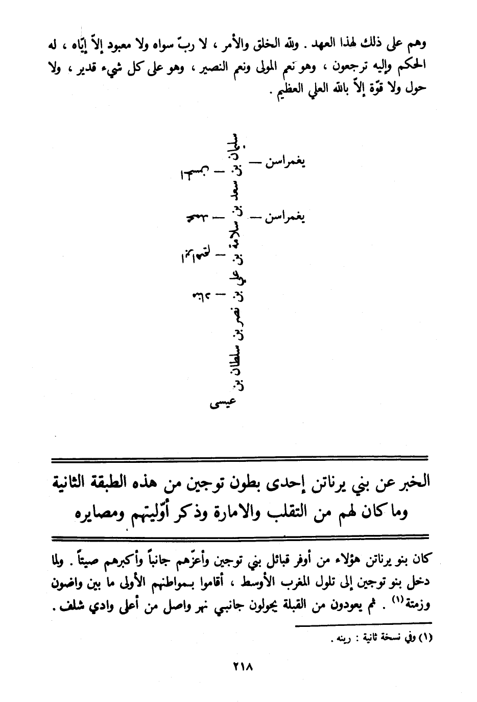 الخبر عن بني يرناتن إحدى بطون توجين من هذه الطبقة الثانية وما كان لهم من التقلب والامارة وذكر أوّليتهم ومصايره