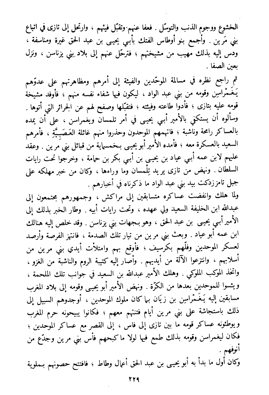 الخشوع ووجوم الذنب والتوسّل. فعفا عنهم وتقبّل فيئهم، وارتحل إلى تازى في اتباع بني مرين. وأجمع بنو أوطاس الفتك بأبي يحيى بن عبد الحق غيرة ومناسفة، ودس إليه بذلك مهيب من مشيختهم، فترحّل عنهم إلى بلاد بني يزناسن، ونزل بعين الصفا.