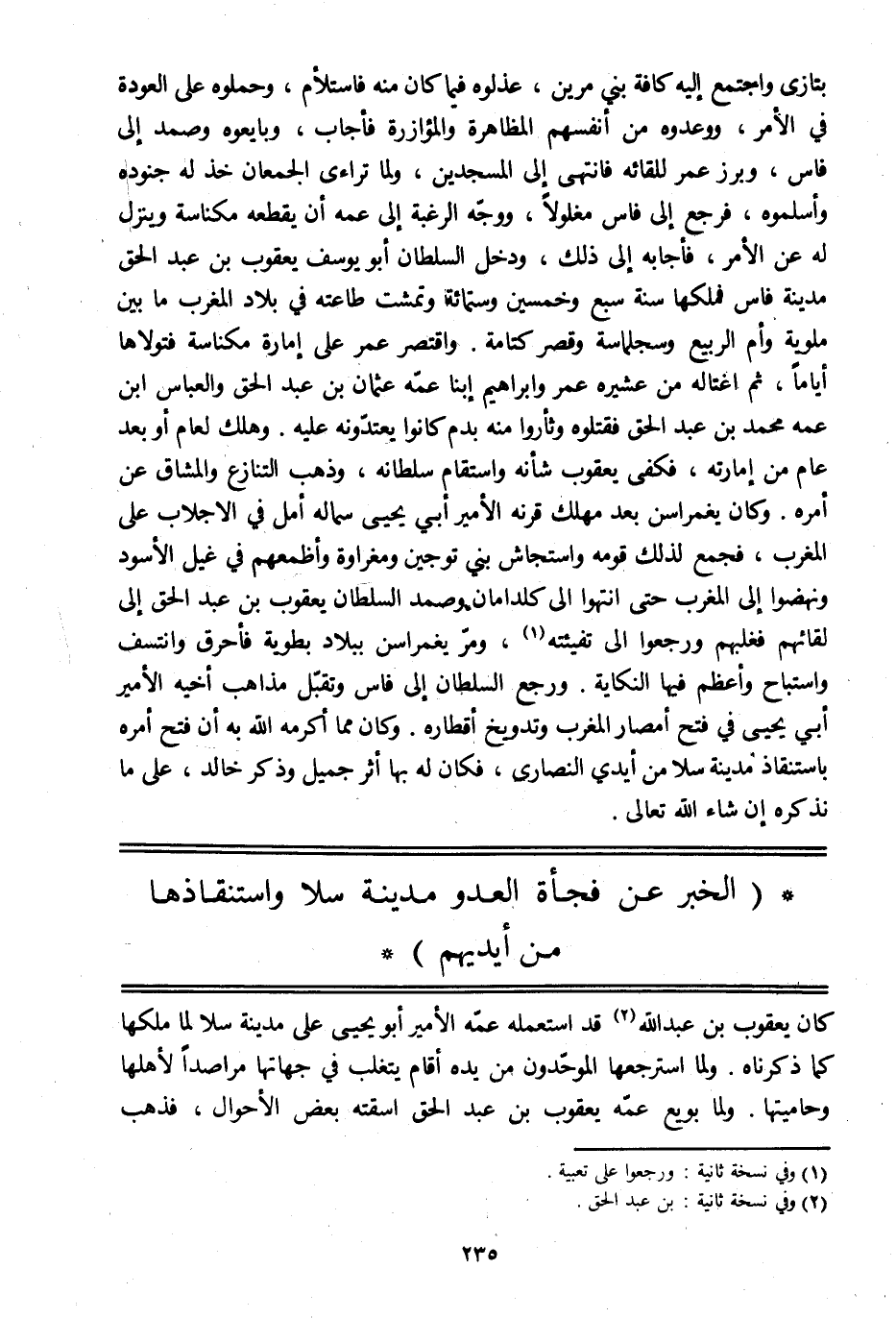 (الخبر عن فجأة العدو مدينة سلا واستنقاذها من أيديهم)