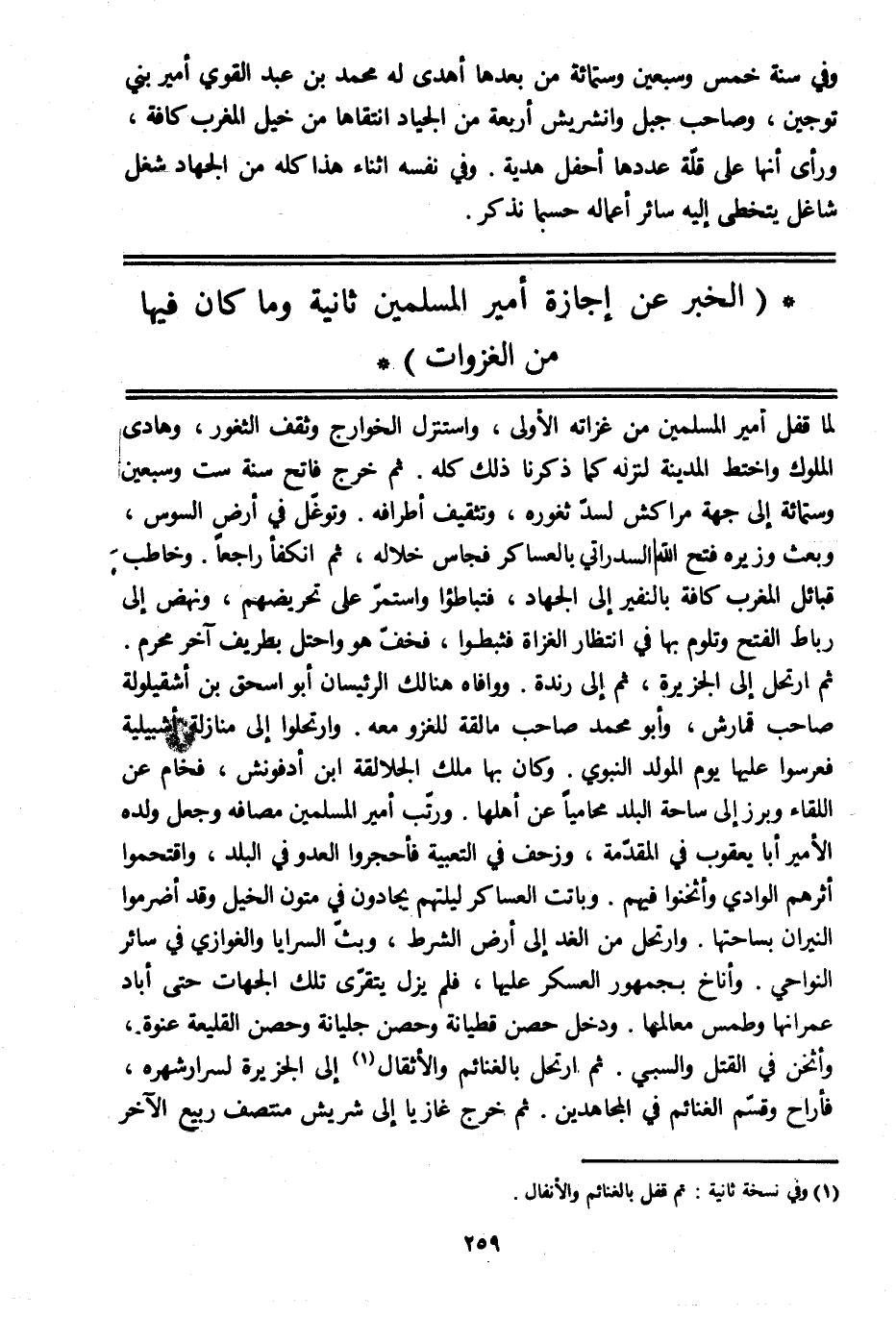 (الخبر عن إجازة أمير المسلمين ثانية وما كان فيها من الغزوات)