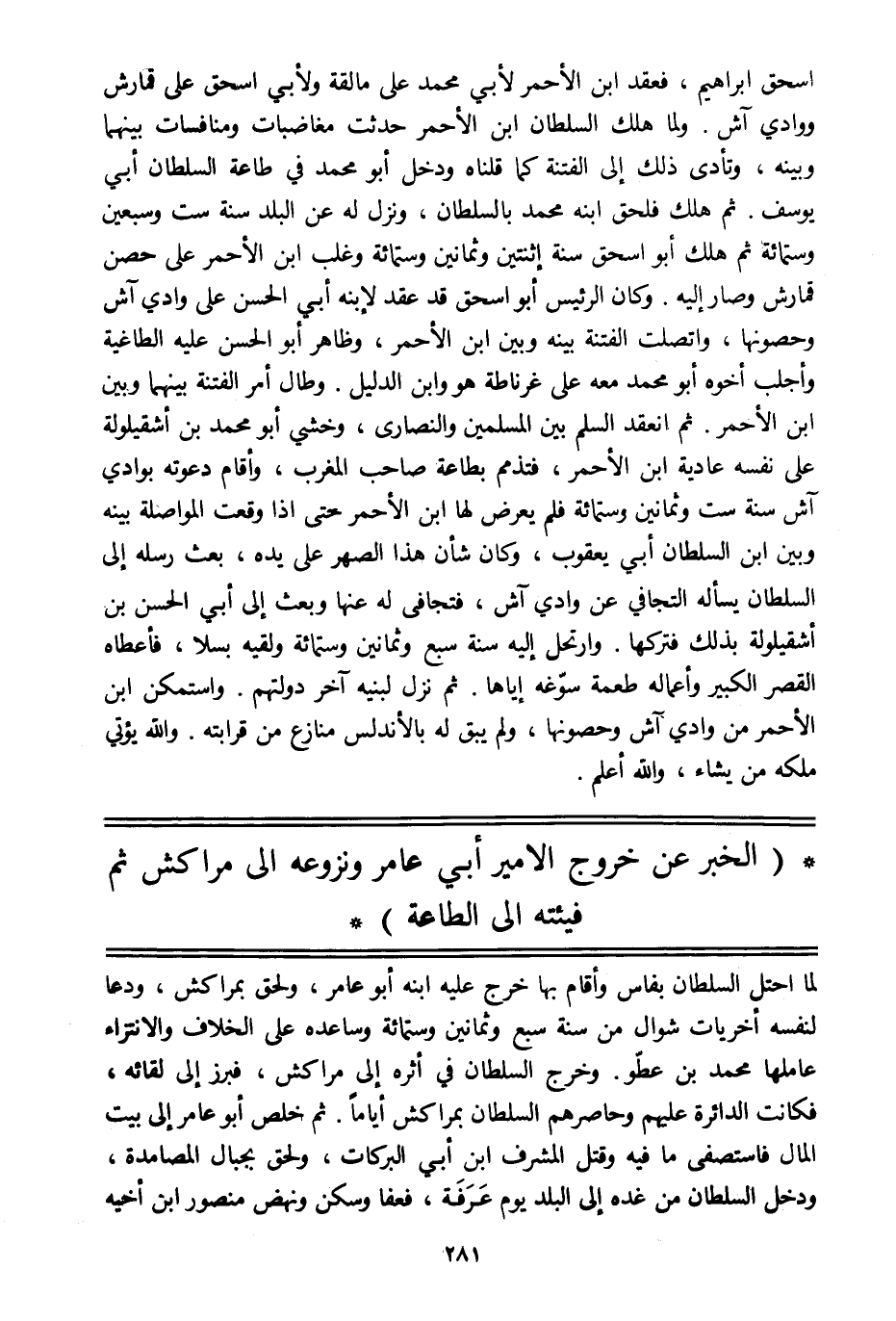 (الخبر عن خروج الأمير أبي عامر ونزوعه الى مراكش ثم فيئته الى الطاعة)
