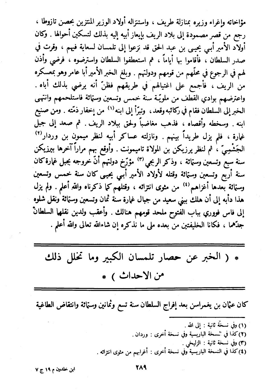 (الخبر عن حصار تلمسان الكبير وما تخلل ذلك من الاحداث)