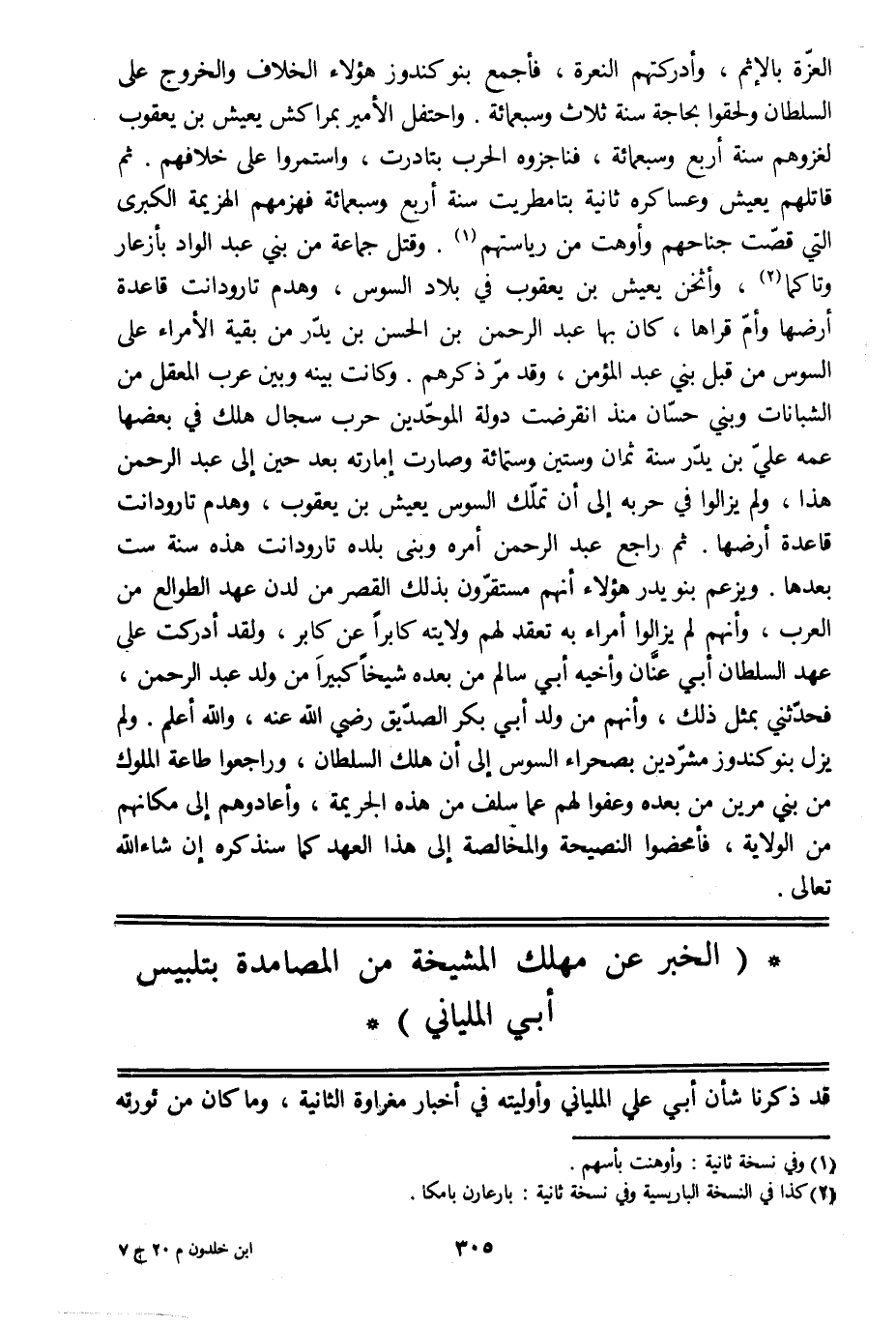 (الخبر عن مهلك المشيخة من المصامدة بتلبيس أبي الملياني)