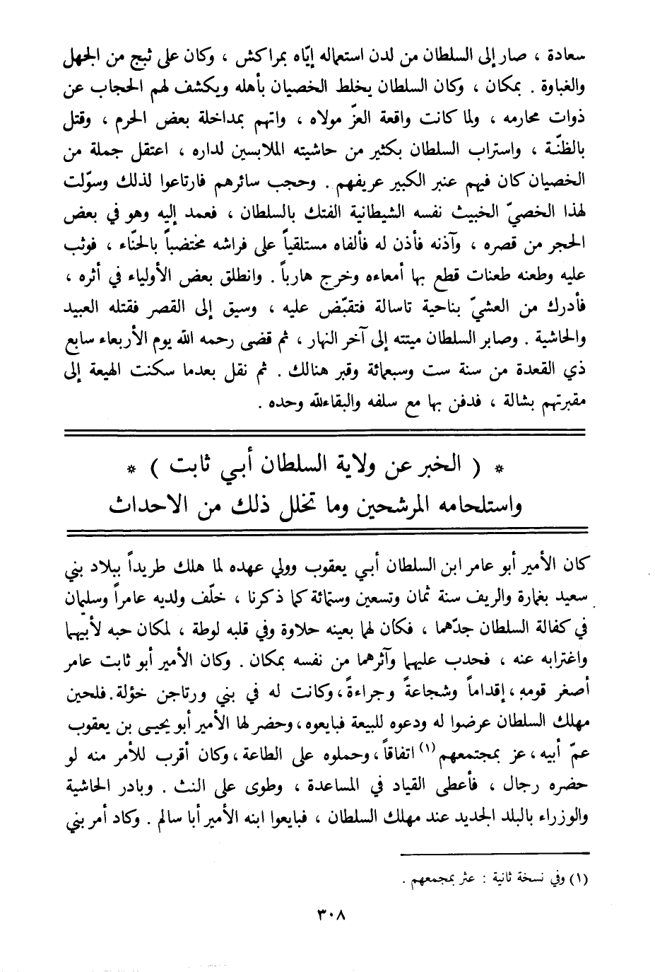 (الخبر عن ولاية السلطان أبي ثابت) واستلحامه المرشحين وما تخلل ذلك من الاحداث