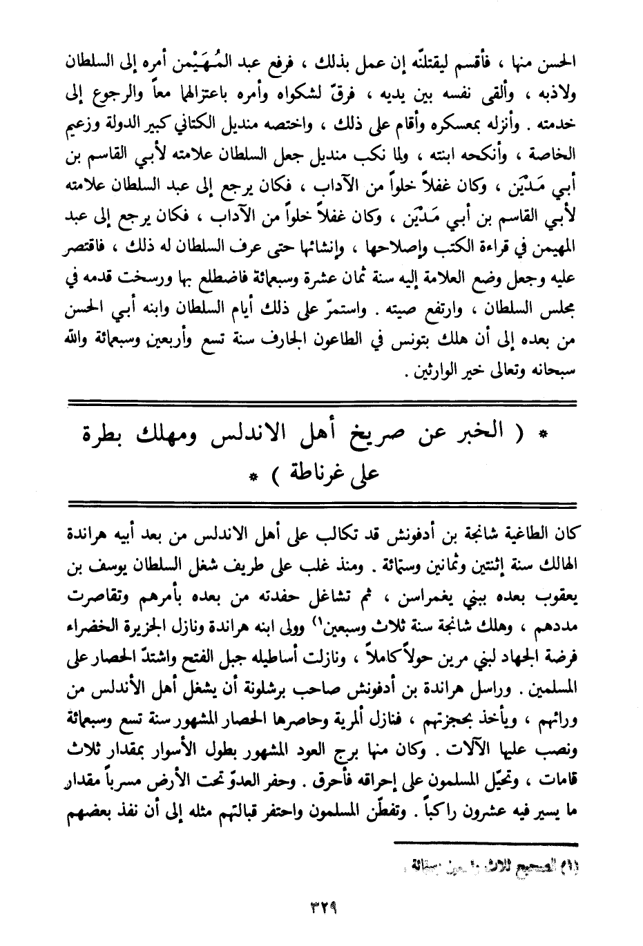 (الخبر عن صريخ أهل الأندلس ومهلك بطرة على غرناطة)