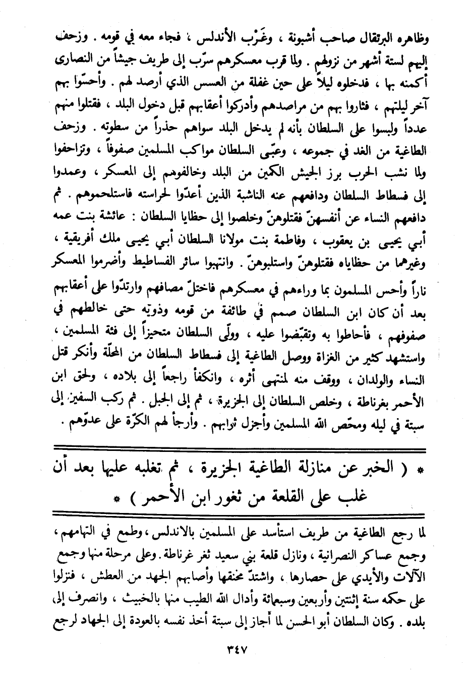 (الخبر عن منازلة الطاغية الجزيرة، ثم تغلبه عليها بعد أن غلب على القلعة من ثغور ابن الأحمر)