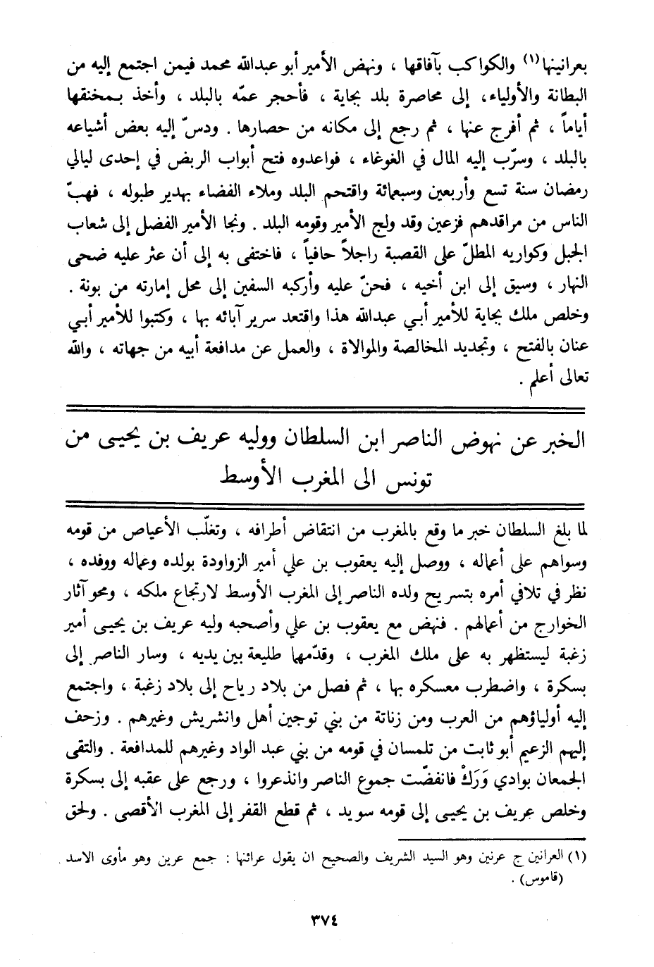 الخبر عن نهوض الناصر ابن السلطان ووليه عريف بن يحيى من تونس الى المغرب الأوسط