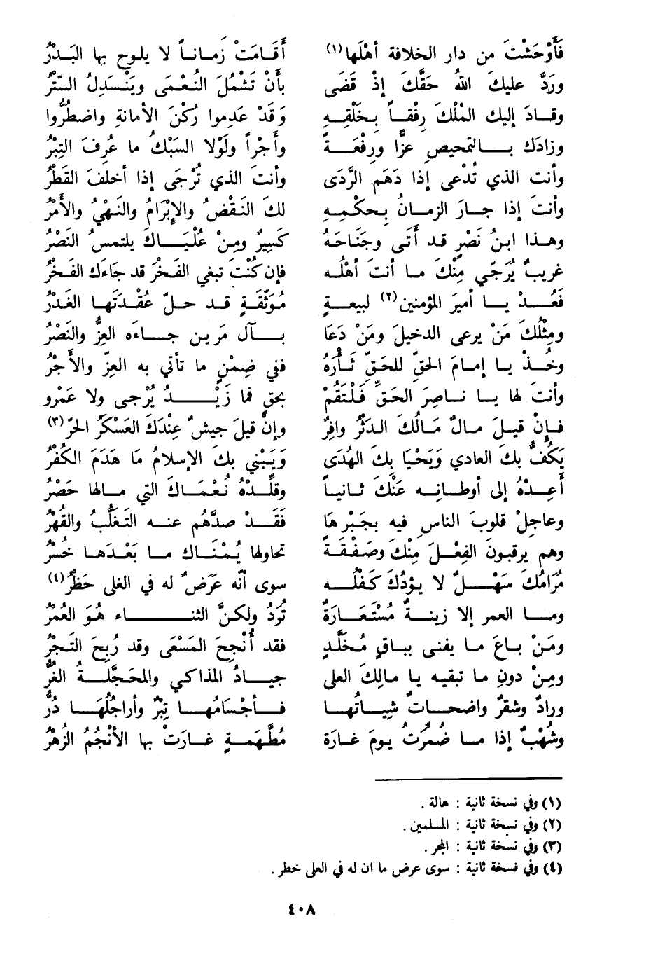 فعد يا أمير المؤمنين [2] لبيعة ... موثّقة قد حلّ عقدتها الغدر